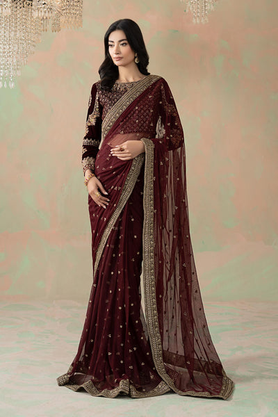 Embroidered Net Saree All Products SFW11R1-ESM-MRN