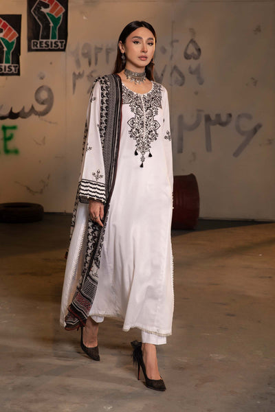 3 Piece Dyed Lawn Suit All Products PSPF246-ESM-WHT