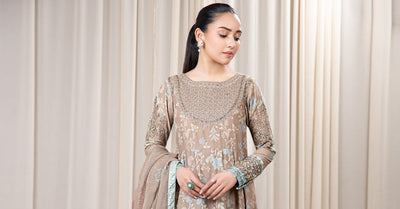 Straight Sleeves With Sequins-Tilla Embroidery, Organza & Pearl Detailing On Borders