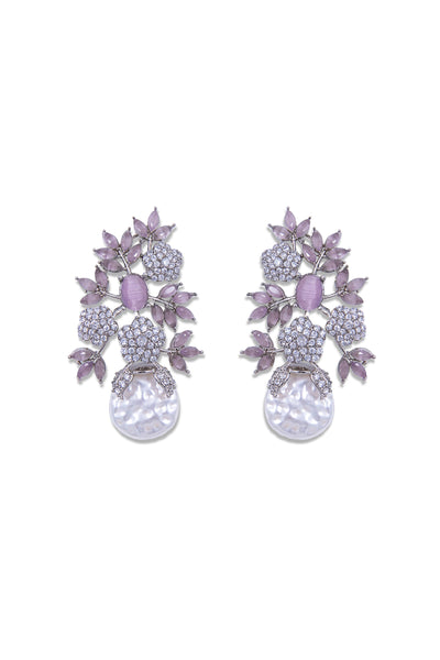 Feel exceptional in our whimsical Ahlam Studs, Featuring delicate florets shimmering with light pink cat's eye stones and white zircons. This masterpiece is finished with a baroque pearl drop, making it a symbol of sophistication and elegance.
