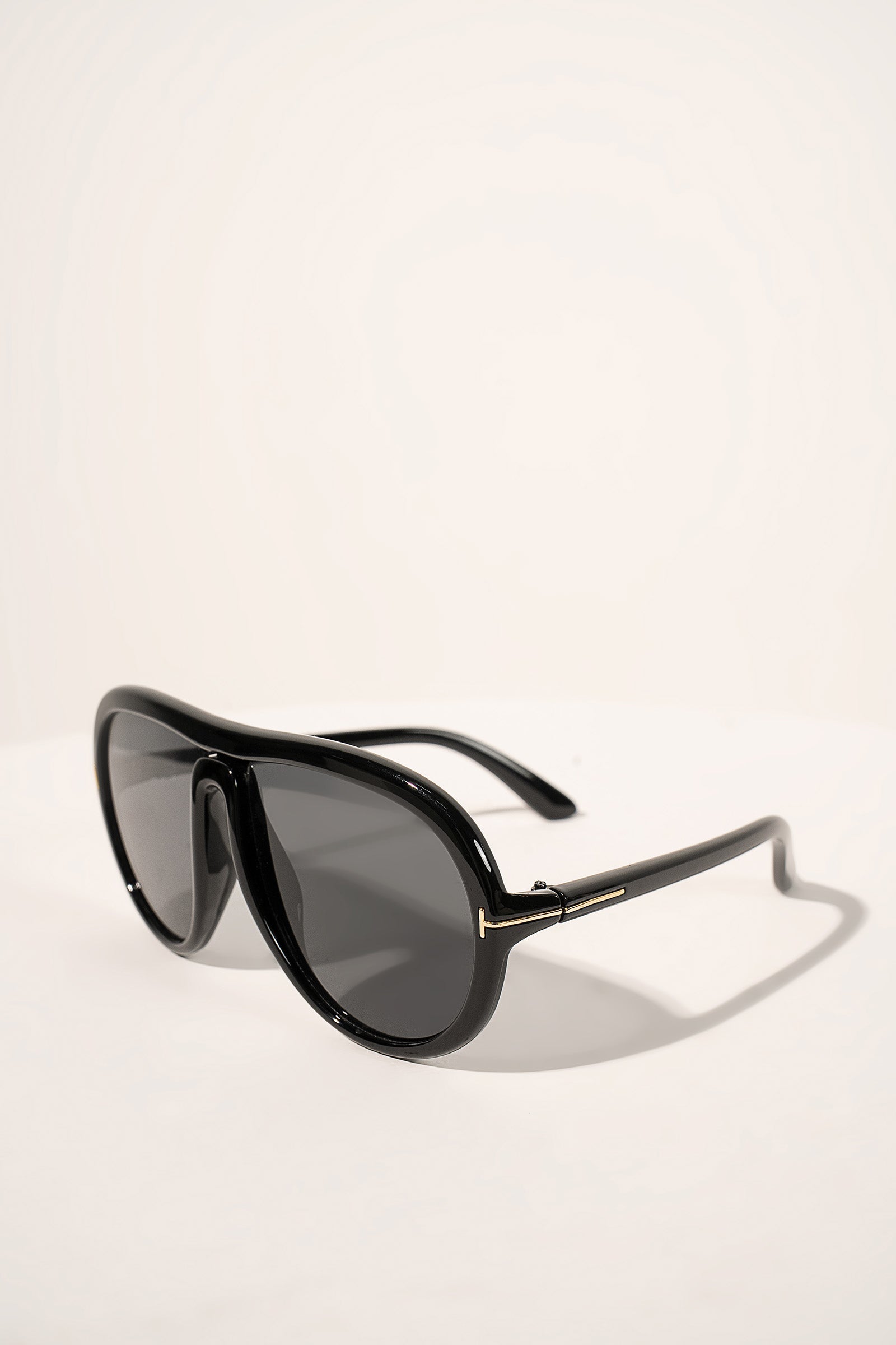 Timeless vintage aviators with a twist: sculpted saddle bridge and T-shaped accents made to standout. Material: Acetate Color: Black Fit Type: Standard Includes: Hard protective case & lens cloth