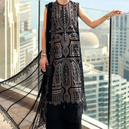 Color: BlackShirtPearl Lace For NeckPrestitched Embroidered Lawn Front R+L PanelsDyed Lawn Front Side Panels & BackEmbroidered Lawn SleevesEmbroidered Lawn Sleeves BorderTrouserDyed Cambric TrouserDupattaChiffon Dupatta With Stickon Studs & DiamantesEmbroidered Organza Dupatta PattiNote: Dry Clean Only