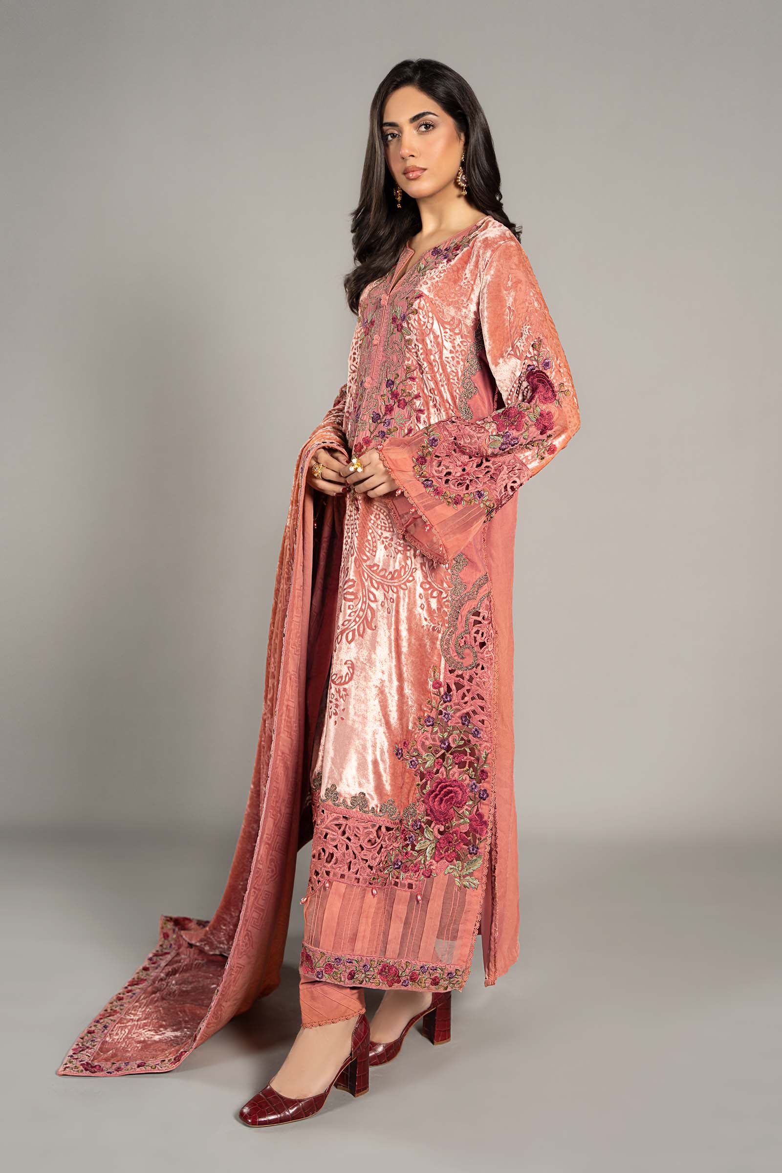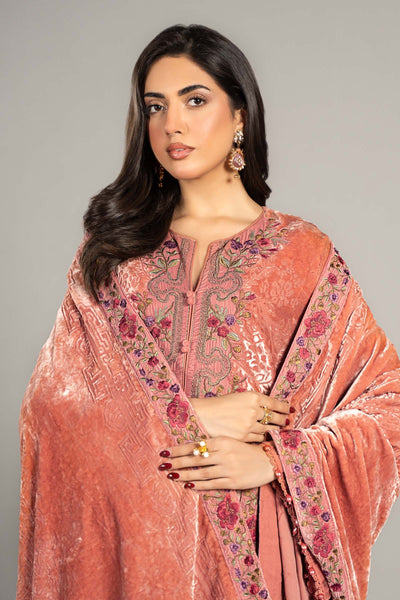 Round Neckline With Velvet Embroidery & Loop Button Detailing