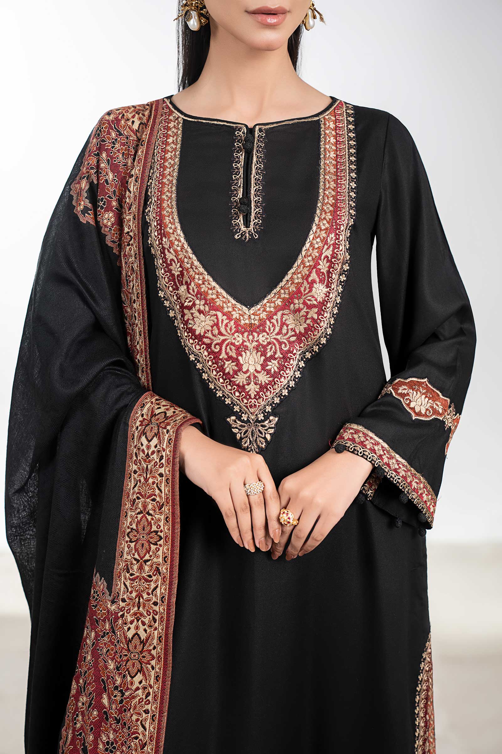 Embroidered Round Neckline With Crochet Button Detailing