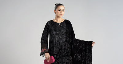 Embroidered Neckline With 3D Flowers Detailing
