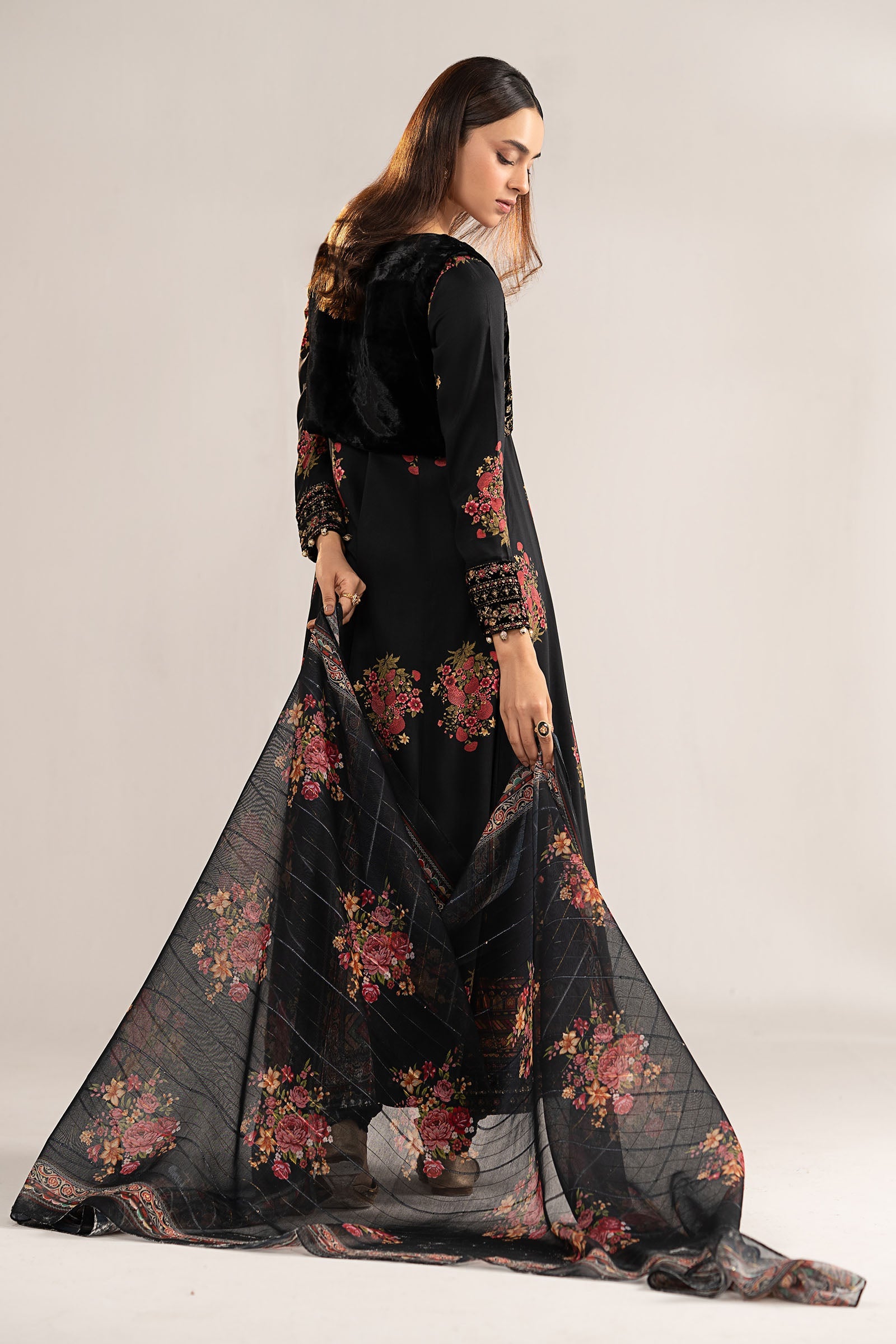 Digital Printed & Velvet Embroidered Border