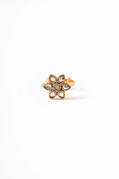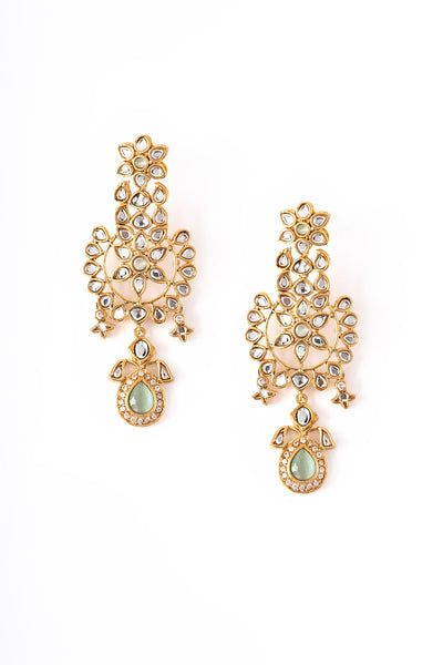 Adorn our traditional Gehna Bridal Set, featuring handcut glass stone artisanship finished with glistening mint green cats eye and white zircons. The set includes a majestic necklace, a pair of earrings, and a ring that make your big day special.