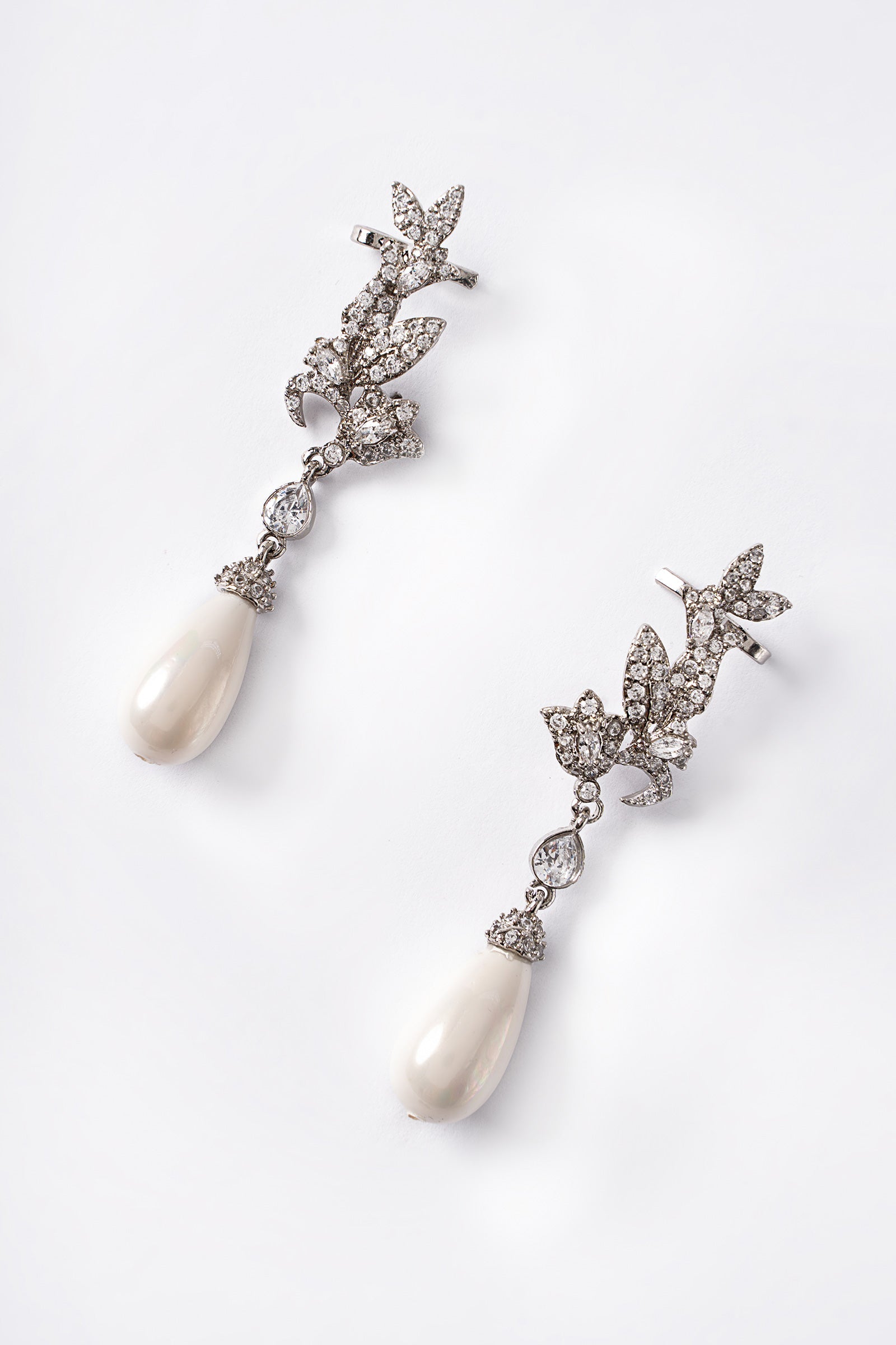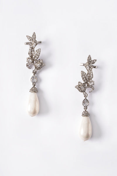 Brighten up your look with our Iris Studs, featuring an all-over sparkling white zircon motif top stud finished with a white pearl drop. This statement piece complements any outfit, creating a graceful look.
