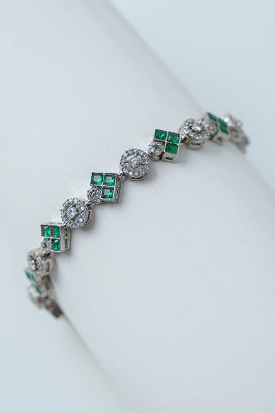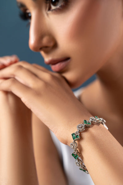 Gracefully laid emerald green stones clustered with heavenly white zircons, this artistry in a delicate design makes it a perfect choice for adding sophistication to your look.