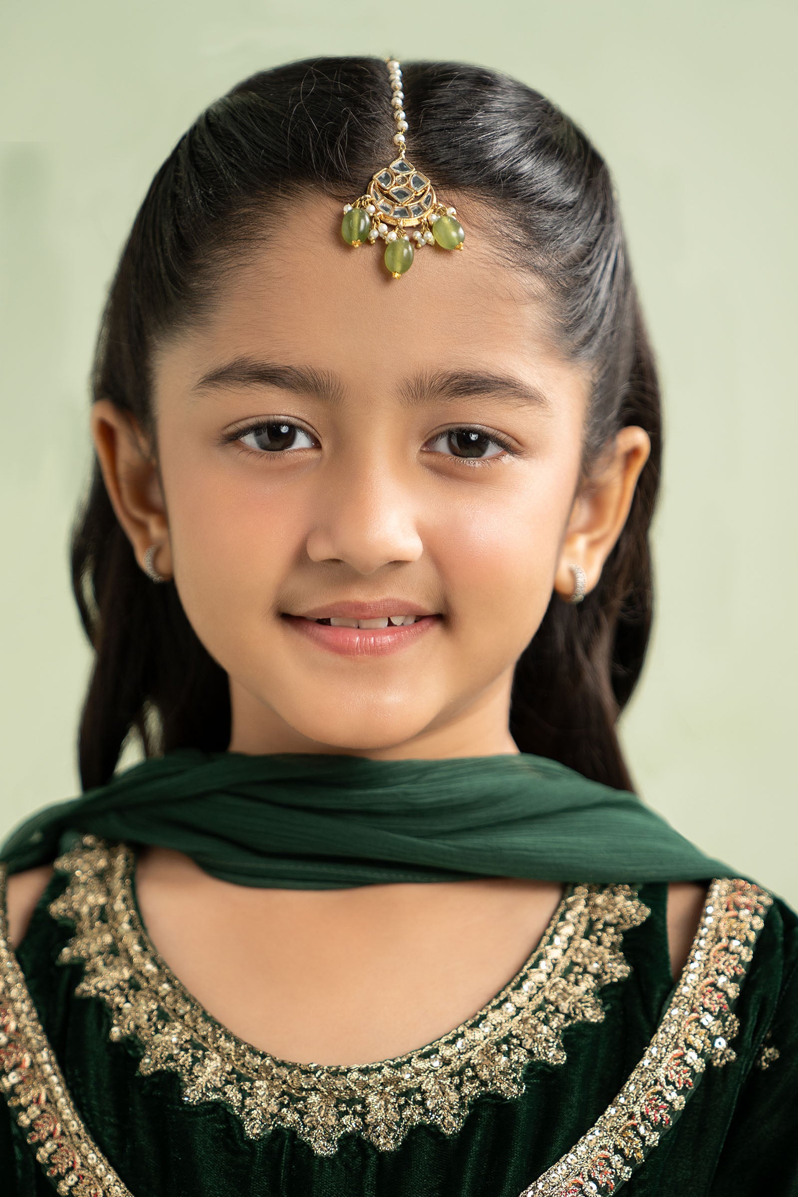 This charming kids tikka, which features exquisite pearl pyroi, glittering white handcut glass, and vivid jade green stones, will add a dash of festive magic to your child's ensemble. a flawless fusion of charm and tradition that is intended to provide additional uniqueness to every gathering.