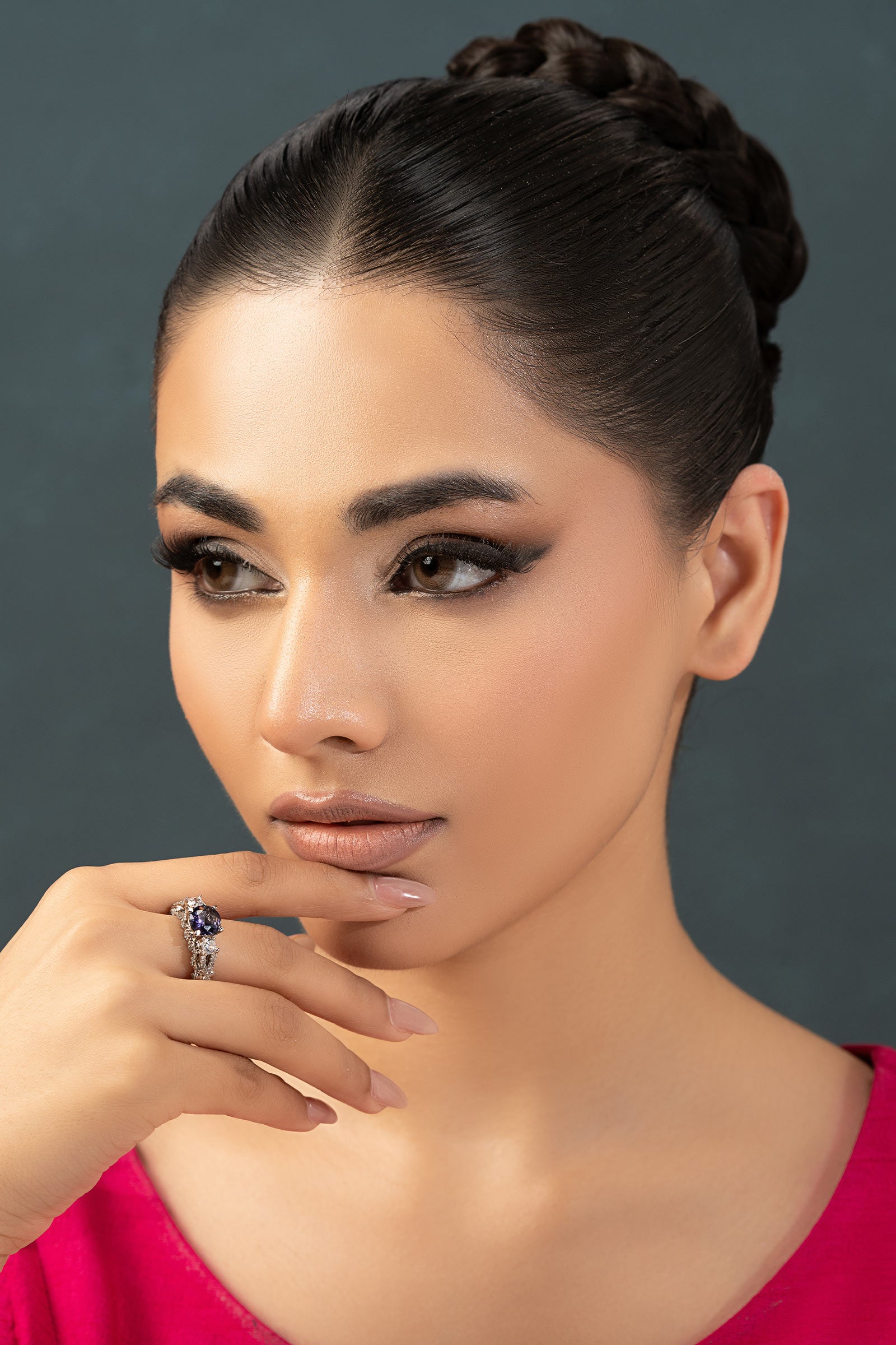 An emblem of quiet power, this ring reveals a captivating violet centerpiece, framed by a radiant aura of white zircons. Majestic yet contemporary, its sculpted silhouette evokes regal splendor reimagined for the modern muse - where elegance is instinctive and confidence reigns supreme. Composition: Silver Care Instructions: Wipe Clean