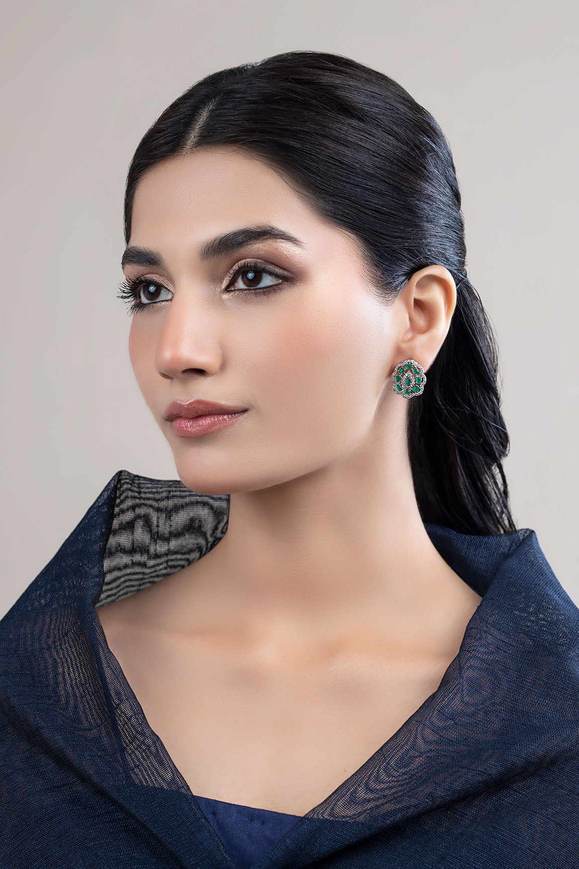 Go bold with our pear-shaped studs, completing in silver finishing with a fine artistry of green onyx framed with intricate zircon stones, giving it a feminine yet daring look that is perfect for the woman of today.