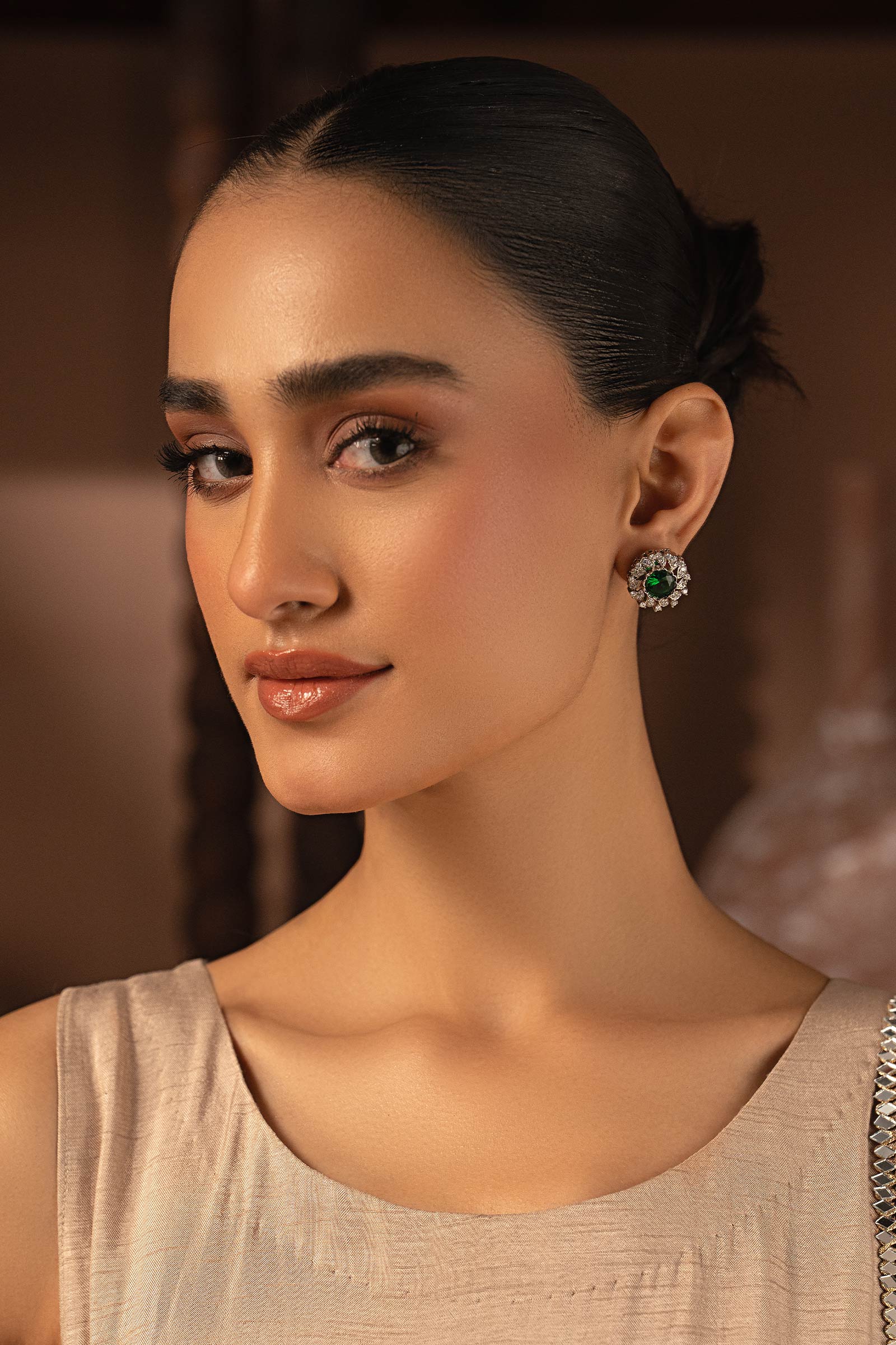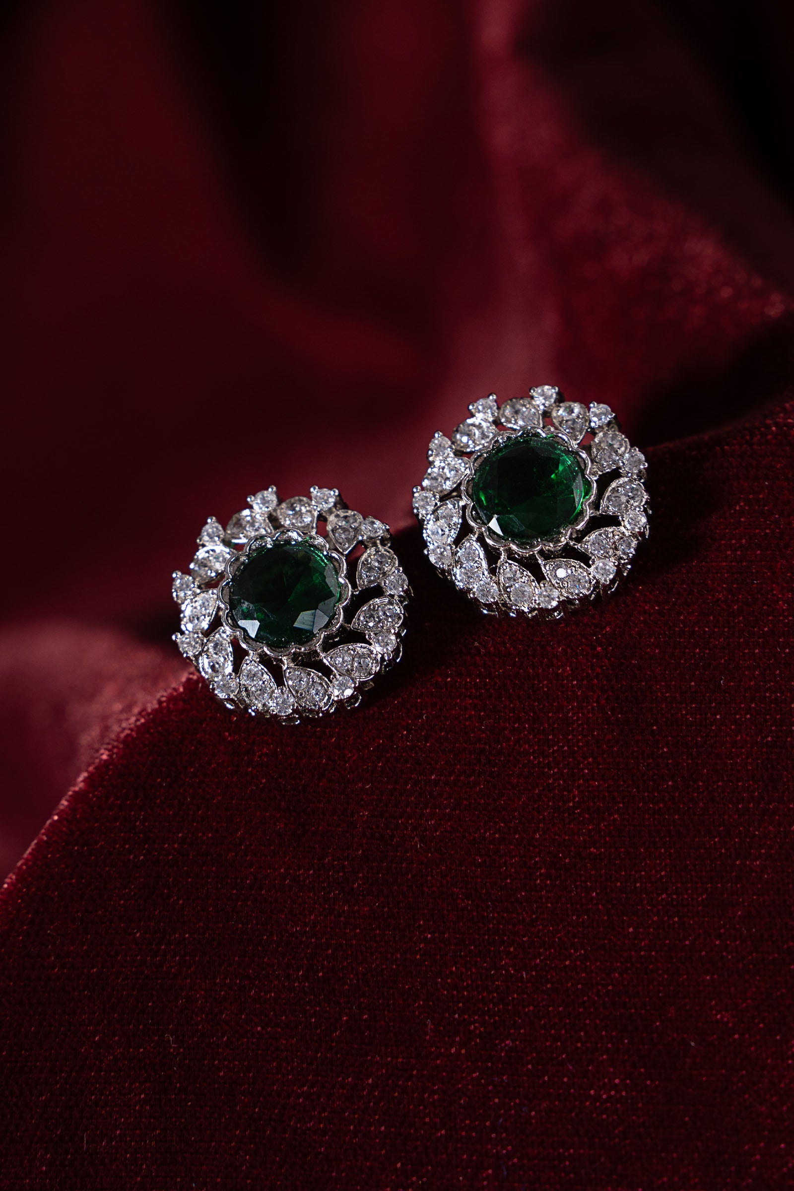 Bold, modern, and effortlessly striking, these stud earrings shimmer with clusters of white zircon-like stones, centering a vivid emerald green for a pop of color and edge. Sleek and sculptural, they elevate any look with contemporary sophistication - perfect for the muse who wears her style with confidence and flair. Composition: Silver Back Pin: Sterling Silver Stud Care Instructions: Wipe Clean