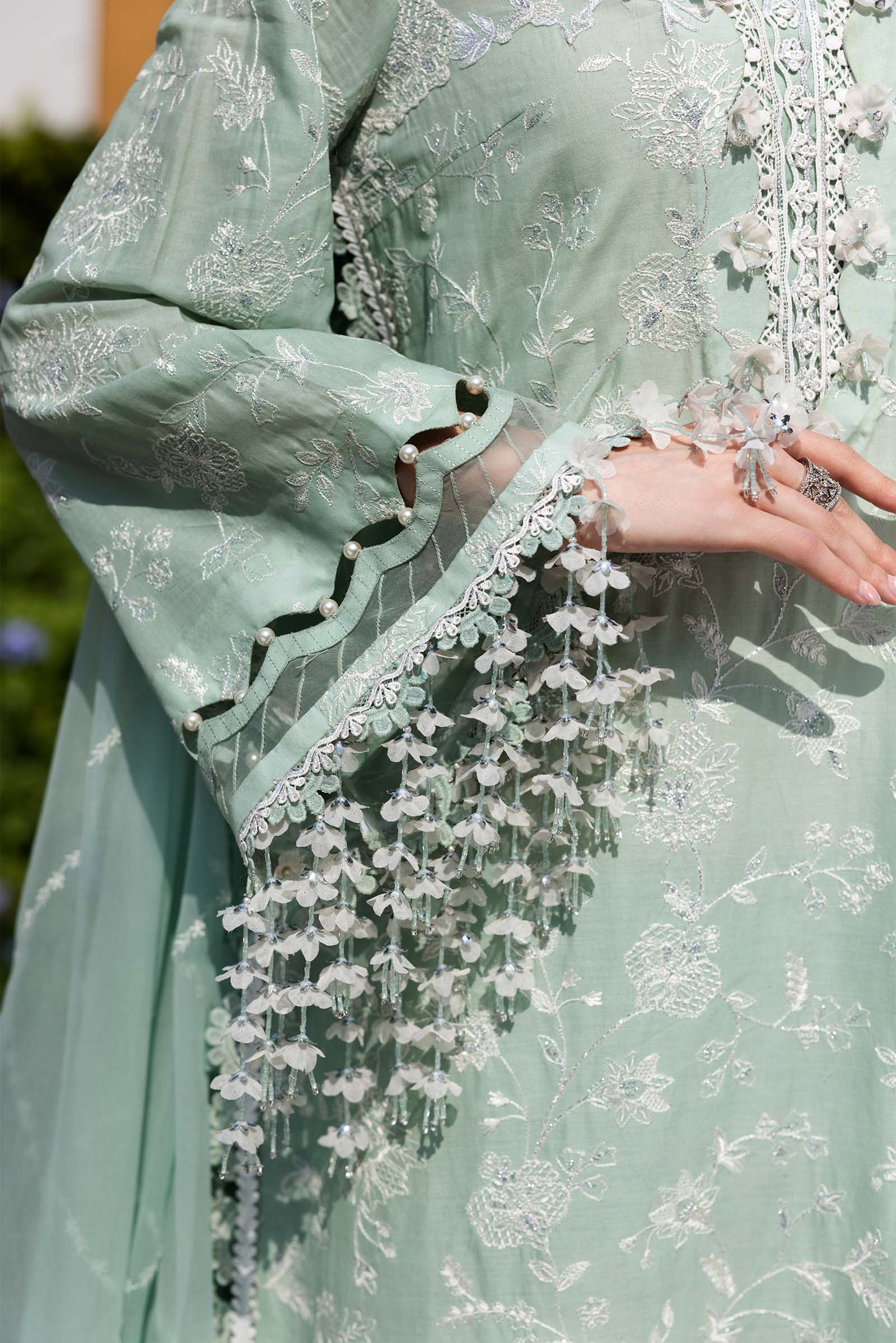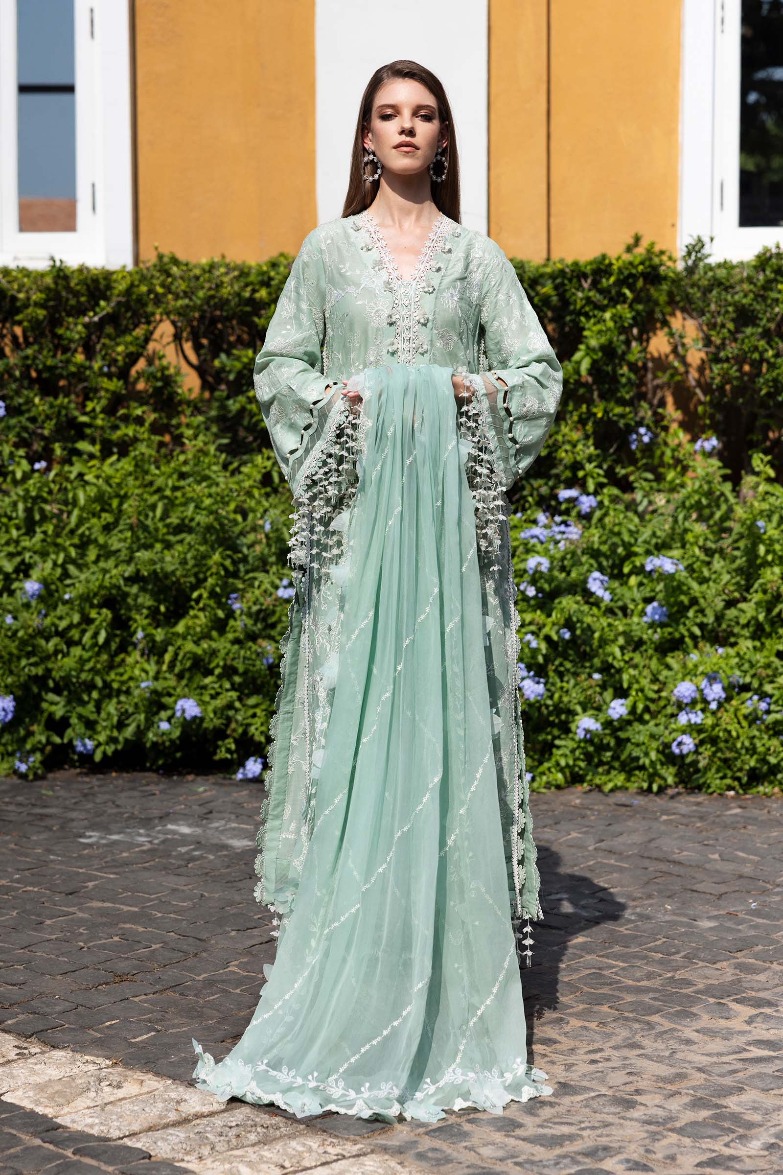 Shirt: Self-on-Self Thread Embroidery With Subtle Badla Highlights Dupatta: Self-on-Self Thread Embroidery With Badla Highlights & Scalloped Detailing Shirt Fabric: Lawn Dupatta Fabric: Chiffon Color: Mint Green