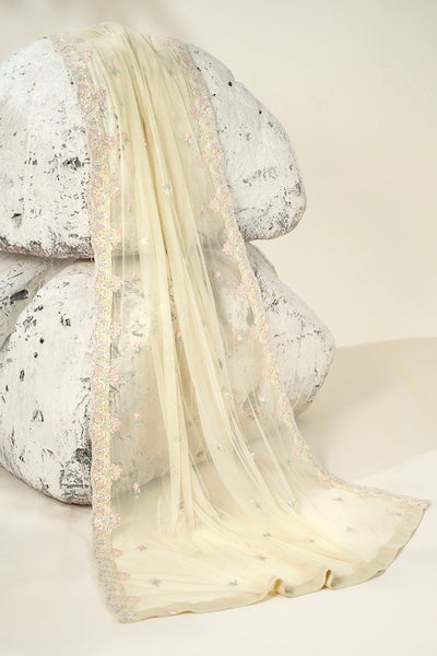 Dupatta: Heavy Sequin Embroidery On Designed Scallop Border & Spray