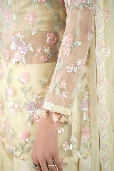 Shirt: Heavy Pattern Of Beautifully Merged Sequin Details With Embroidery On Modern Flowers