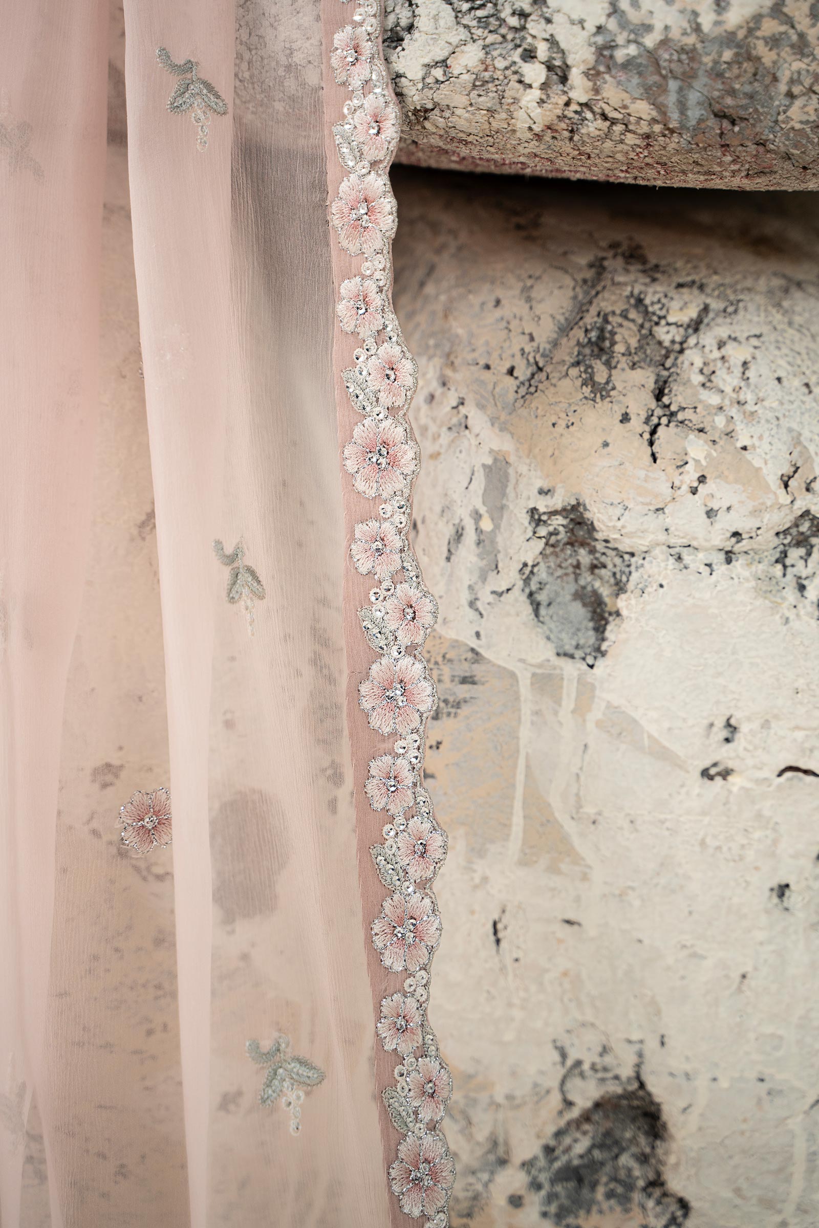 Dupatta: Floral Scalloped Border With All Over Spray & Sequin Details