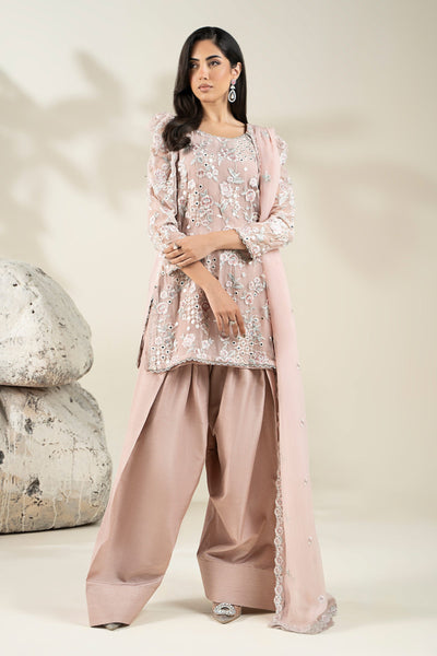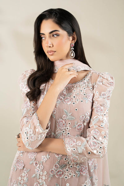 Shirt: Heavy Shaded Floral Embroidery With Mirror Effect Double Sequin