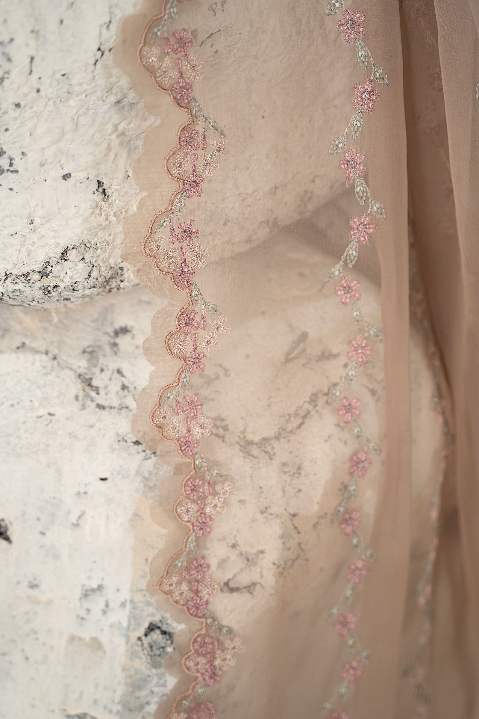 Dupatta: Floral Embroidery Waves With Scalloped Edge