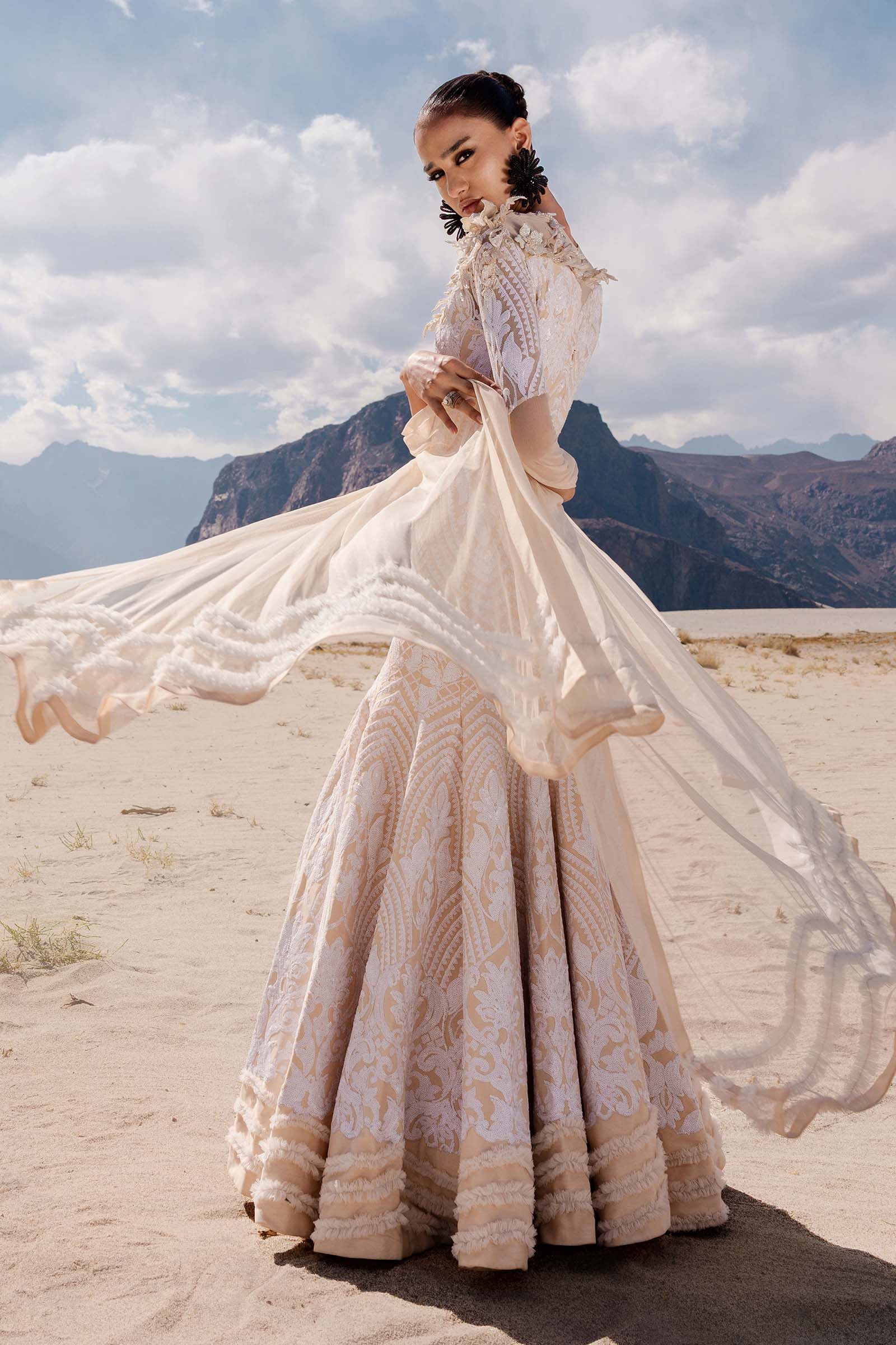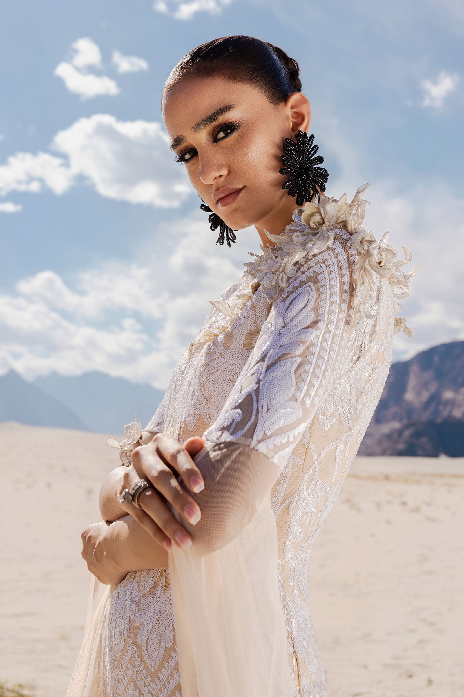 Shirt: Heavy Sequin Work On Composed Designed Mesh