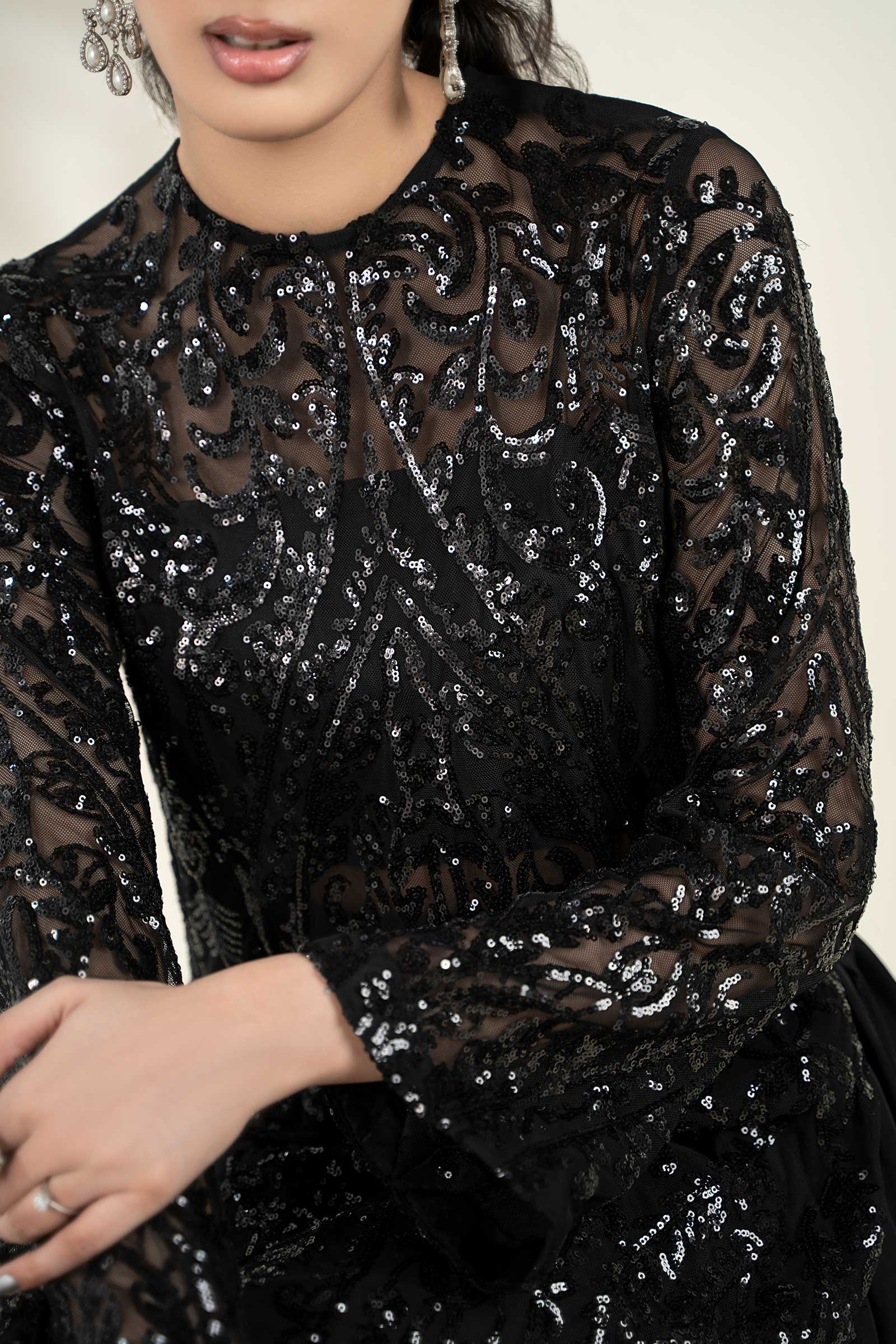 Shirt: Heavy Sequin Work On Composed Designed Mesh