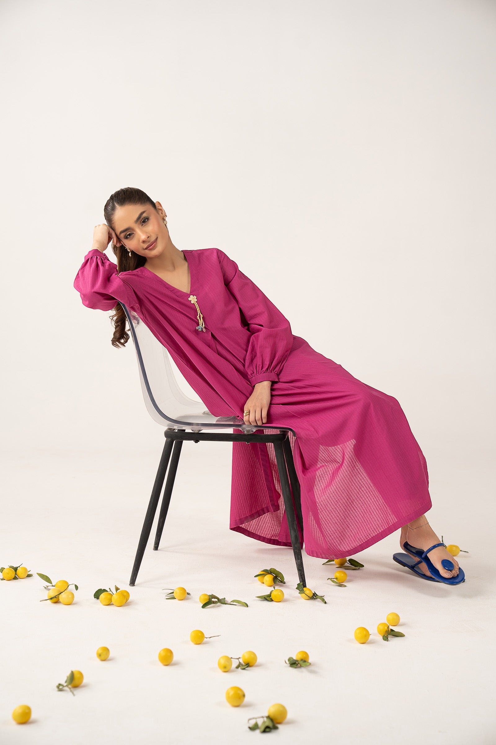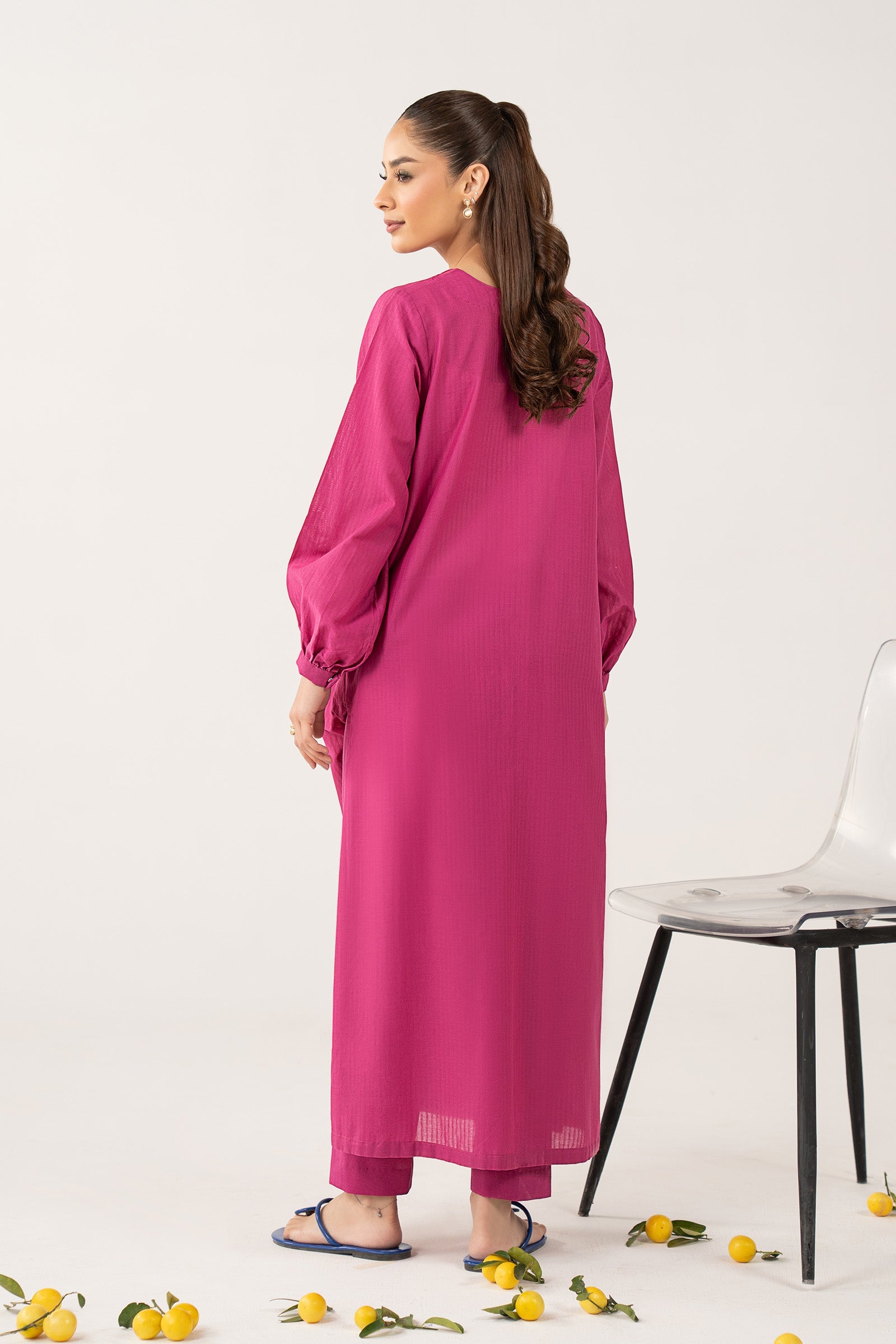 1 Piece - Shirt Straight Shirt Deep V-Neck With Buttons Detailing Gathered Sleeves Color: Pink Fabric: Pinstripe Cotton Model is wearing xs size Note: Dry Clean Only