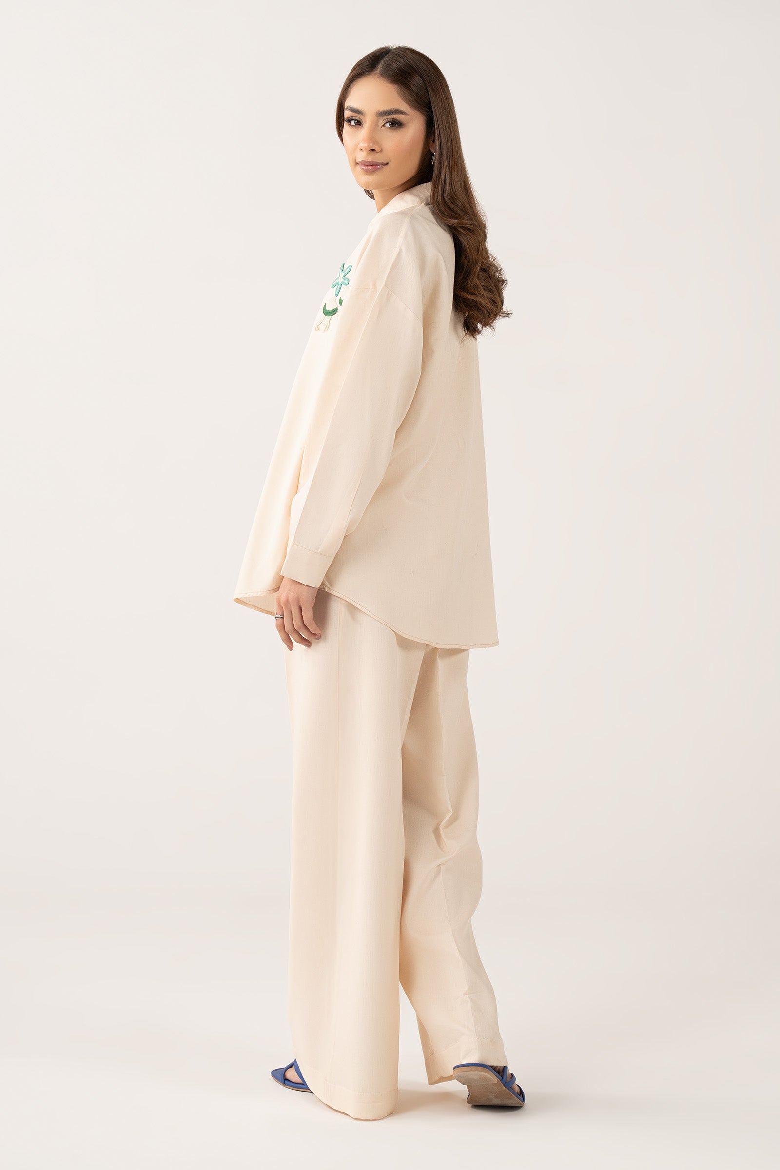 2 Piece - Shirt & TrouserShirtButton-Down Shirt With Crochet DetailingFolded-Cuff SleevesColor: WhiteFabric: Arabic LawnTrouserHigh-Waisted Wide Leg TrouserElasticated WaistbandColor: WhiteFabric: Arabic LawnModel is wearing xs sizeNote: Dry Clean Only