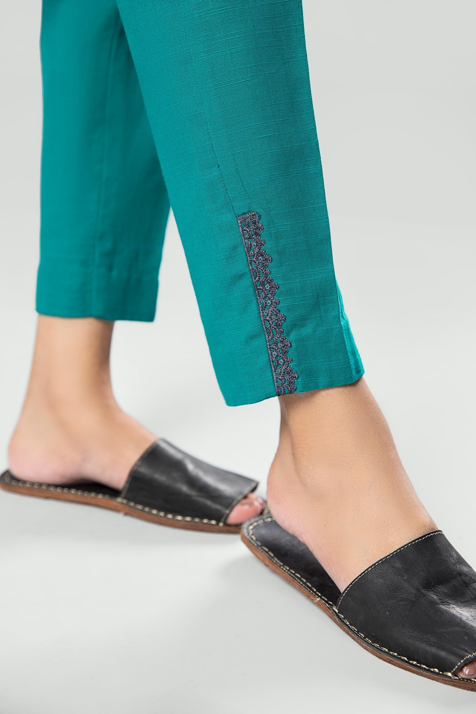 ShirtDigital Printed Straight ShirtEmbroidered Overlap NecklineEmbroidered Side SeamsPrinted Full SleevesColor: TealFabric: Slub KhaddarFit: RegularTrousersDyed Straight TrousersElasticated WaistbandEmbroidered HemColor: TealFabric: Slub KhaddarFit: RegularDupattaDigital Printed DupattaColor: TealFabric: HerringboneModel is wearing size xsNote: Dry Clean Only