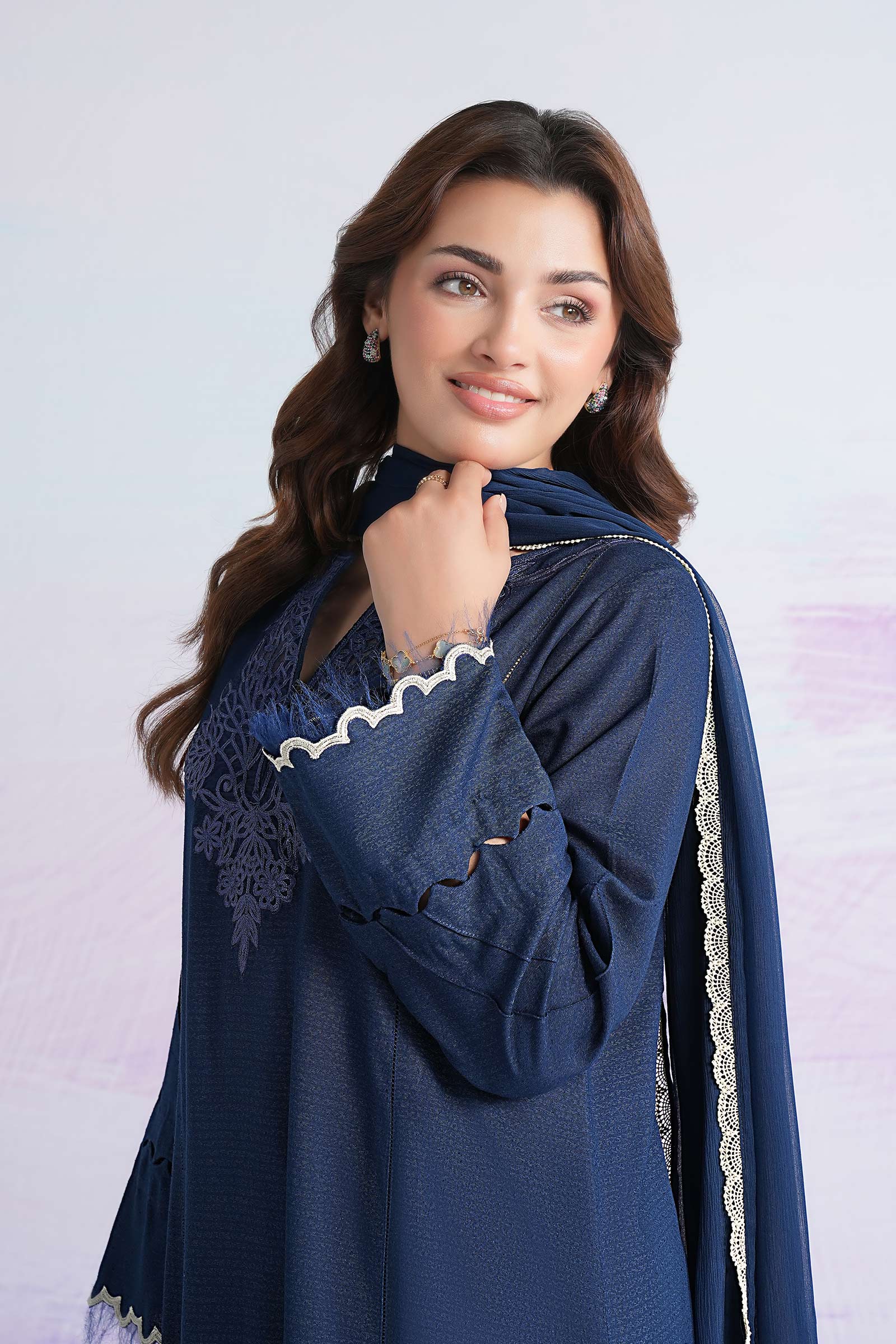 Straight Sleeves With Fabric Detailing & Scallop Border