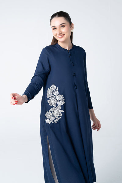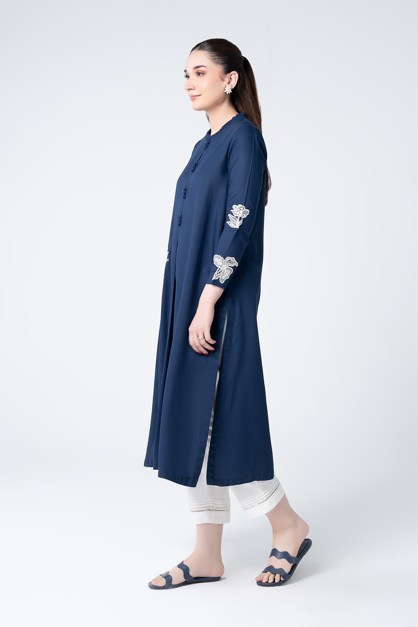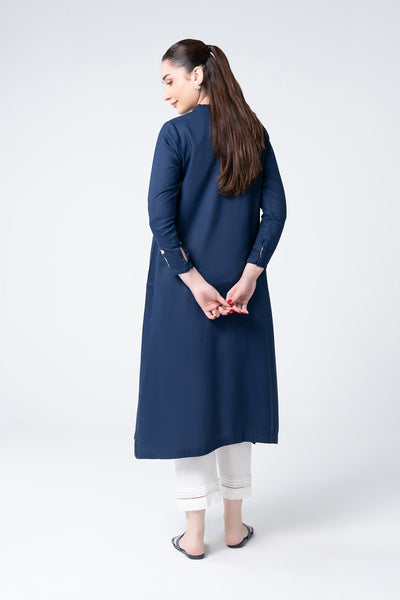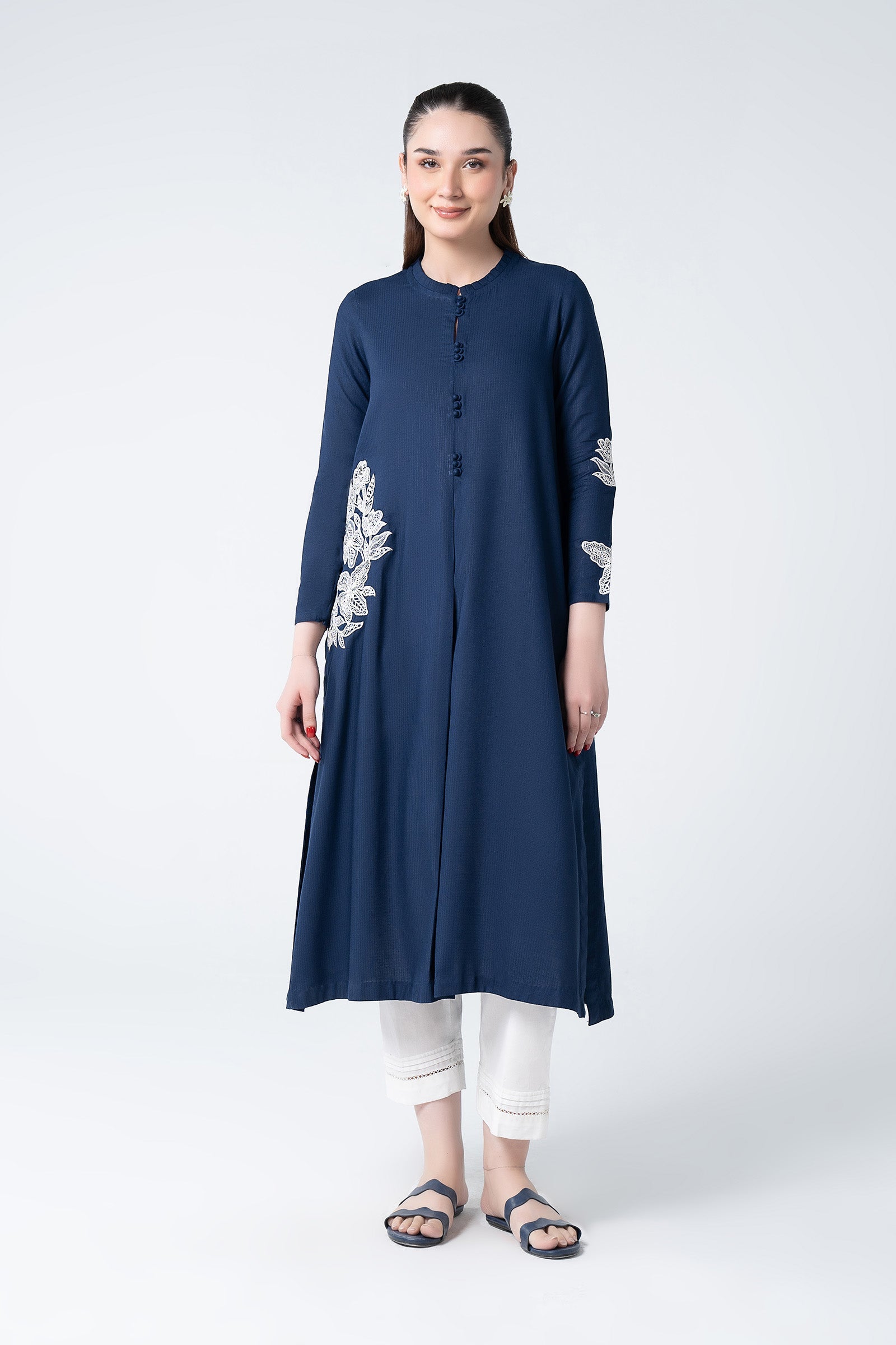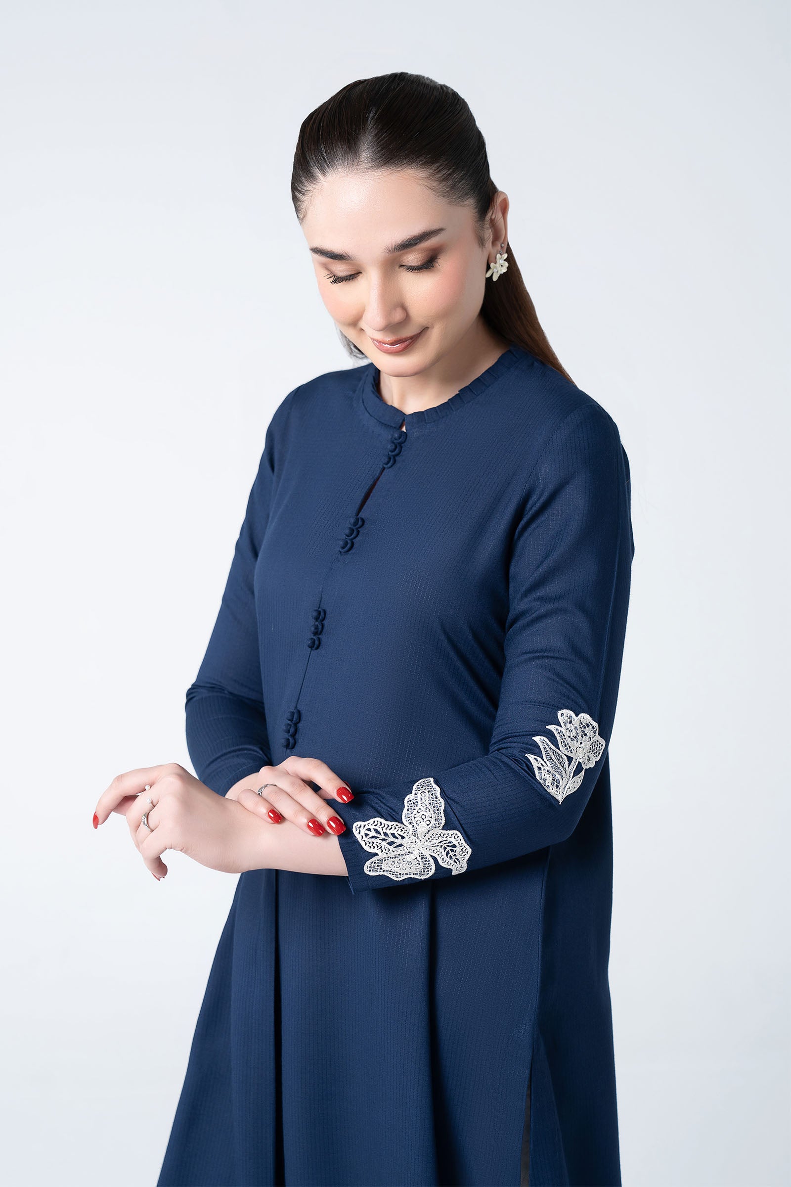 Band Collar Neck With Frill & Loop-Buttons Detailing