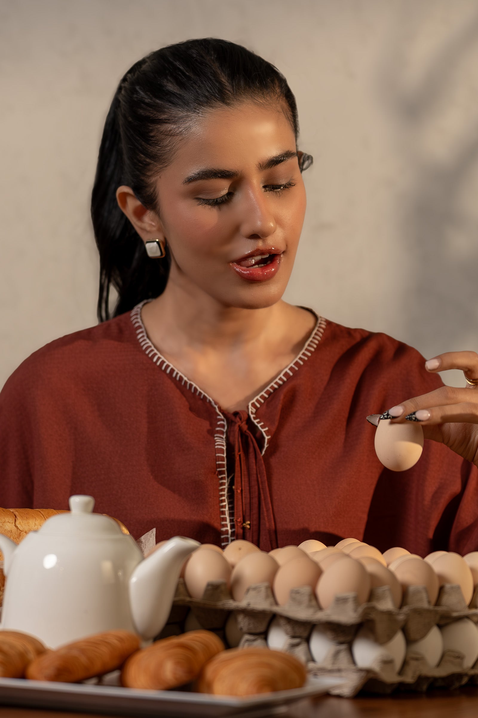 Round Neckline With Buttonhole Stitch & Tassels Detailing