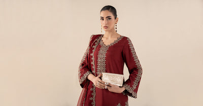 Embroidered Sleeves With Fabric-Balls Drop Detailing On Border