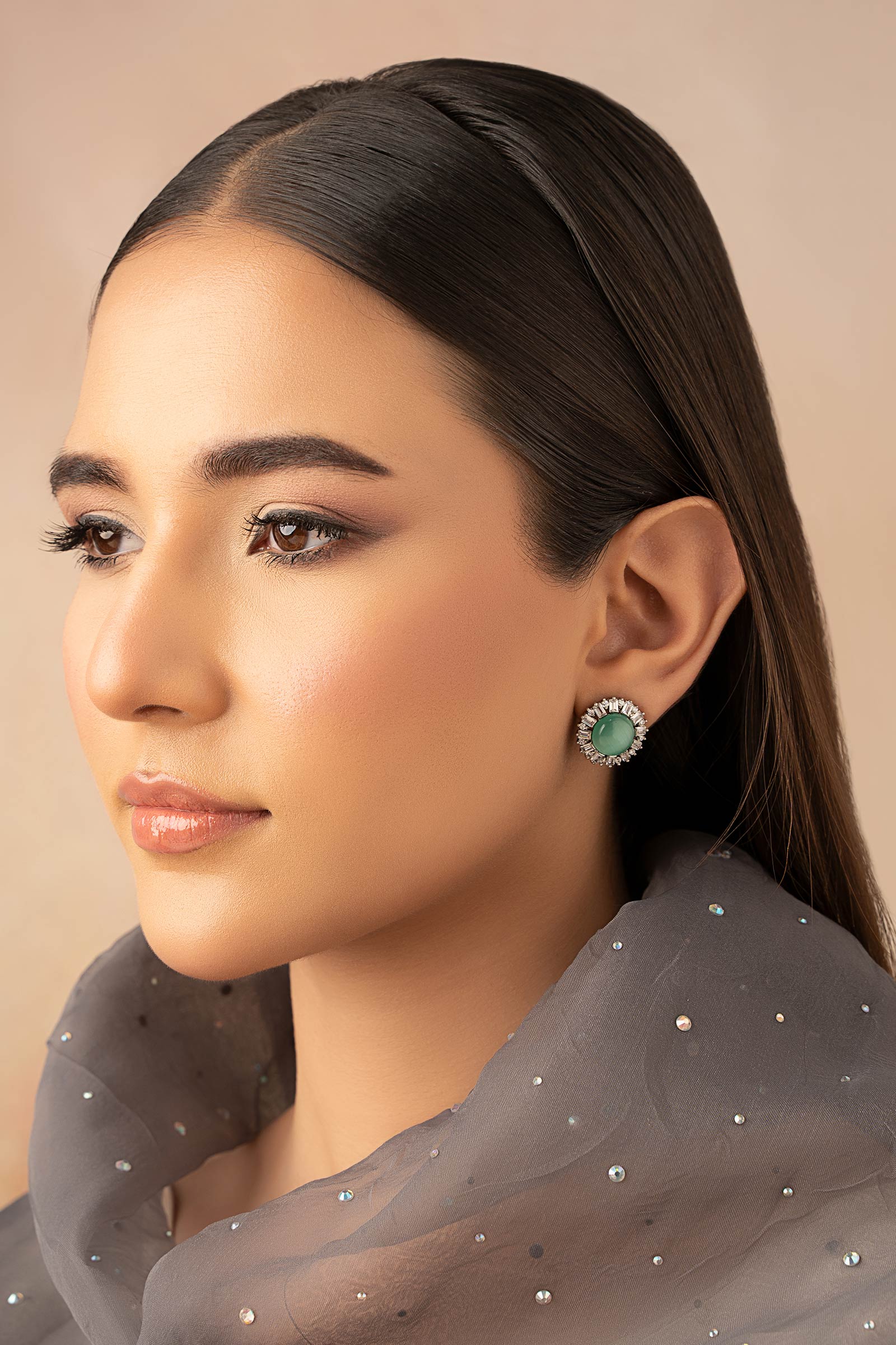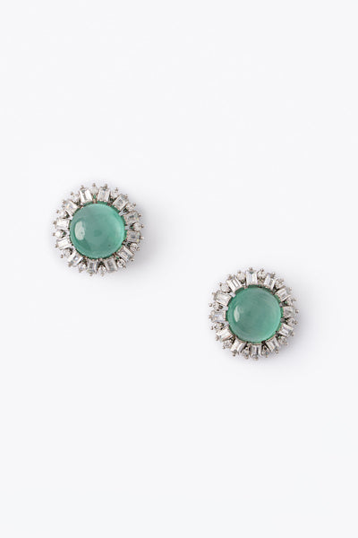 Our Minimalist Stud Earrings are a simple yet elegant pair of jewelry that will add a touch of sparkle to your look. Featuring white zircons artistry with a mint green cats eye stone in the center. They are perfect for everyday wear or special occasions.