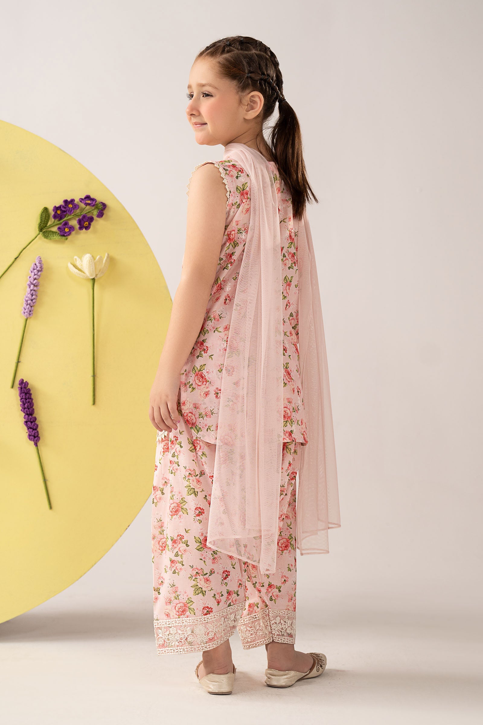 ShirtRound Embroidered NecklinePrinted Front With Spray EmbroideryLace Detailing On Border With Embroidered MotifLace Detailing On ArmholePrinted BackFit: RegularColor: PinkFabric: LawnTrousersPrinted ShalwarElasticated WaistbandEmbroidered HemFit: RegularColor: PinkFabric: LawnDupatta Dyed DupattaColor: PinkFabric: Polyester NetWork Details: Sequins & Thread EmbroideryModel is wearing 6-8 sizeNote: Dry Clean Only
