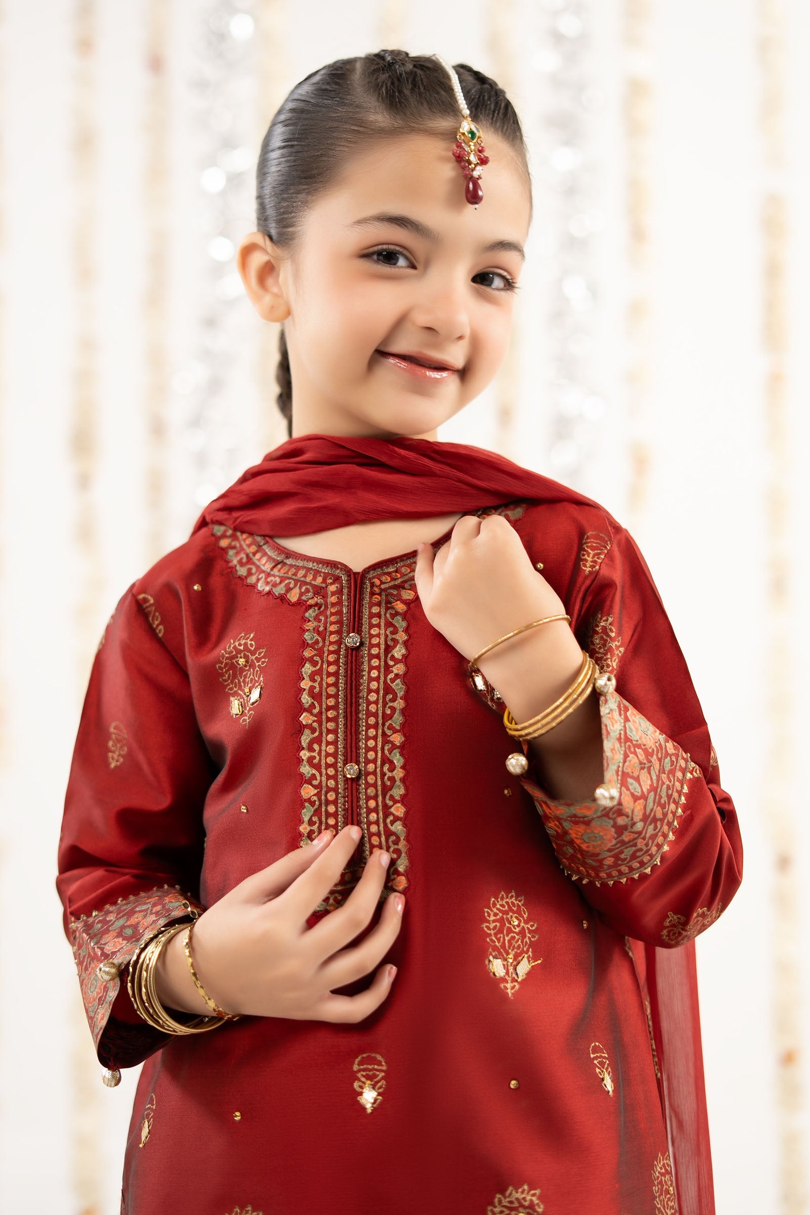 ShirtBlock Printed Shirt With Diamantes EmbellishmentBlock Printed Neckline With Buttons DetailingBlock Printed Side SeamsBlock Printed Border With Gotta DetailingBlock Printed Sleeves With Gotta DetailingGotta Ball Drops On Sleeves & Border Color: RedFabric: Two Tone SilkShararaSolid ShararaElasticated WaistbandBlock Printed HemColor: RedFabric: Two Tone SilkDupattaSolid DupattaTwo-Side Kiran Lace Border Color: RedFabric: ChiffonModel is wearing 6-8 sizeNote: Dry Clean Only