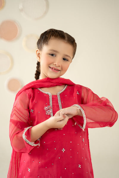 Straight Sleeves With Pleats Detailing & Diamantes Embellished Border