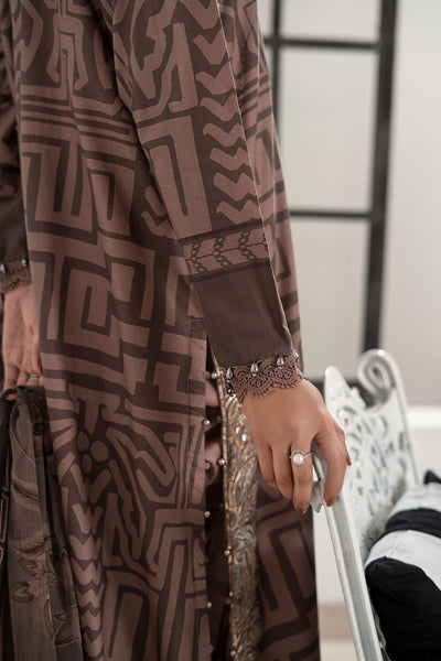 Straight Sleeves With Lace & Pearl Drop Detailing On Border