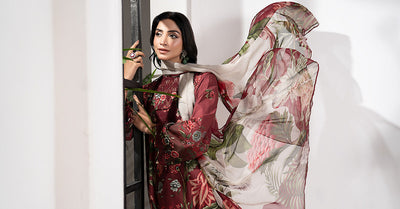 Printed Sleeves With Lace & Pearl Drop Detailing On Border