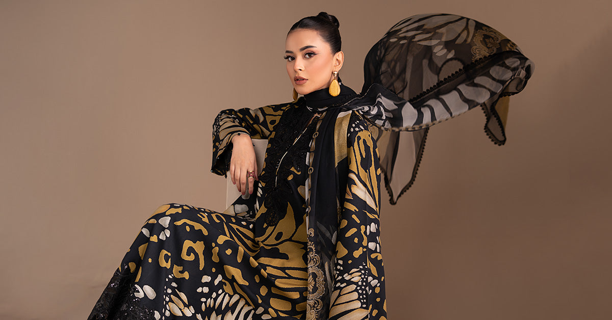 3D Embroidered Neckline With Buttons & Pearls Detailing