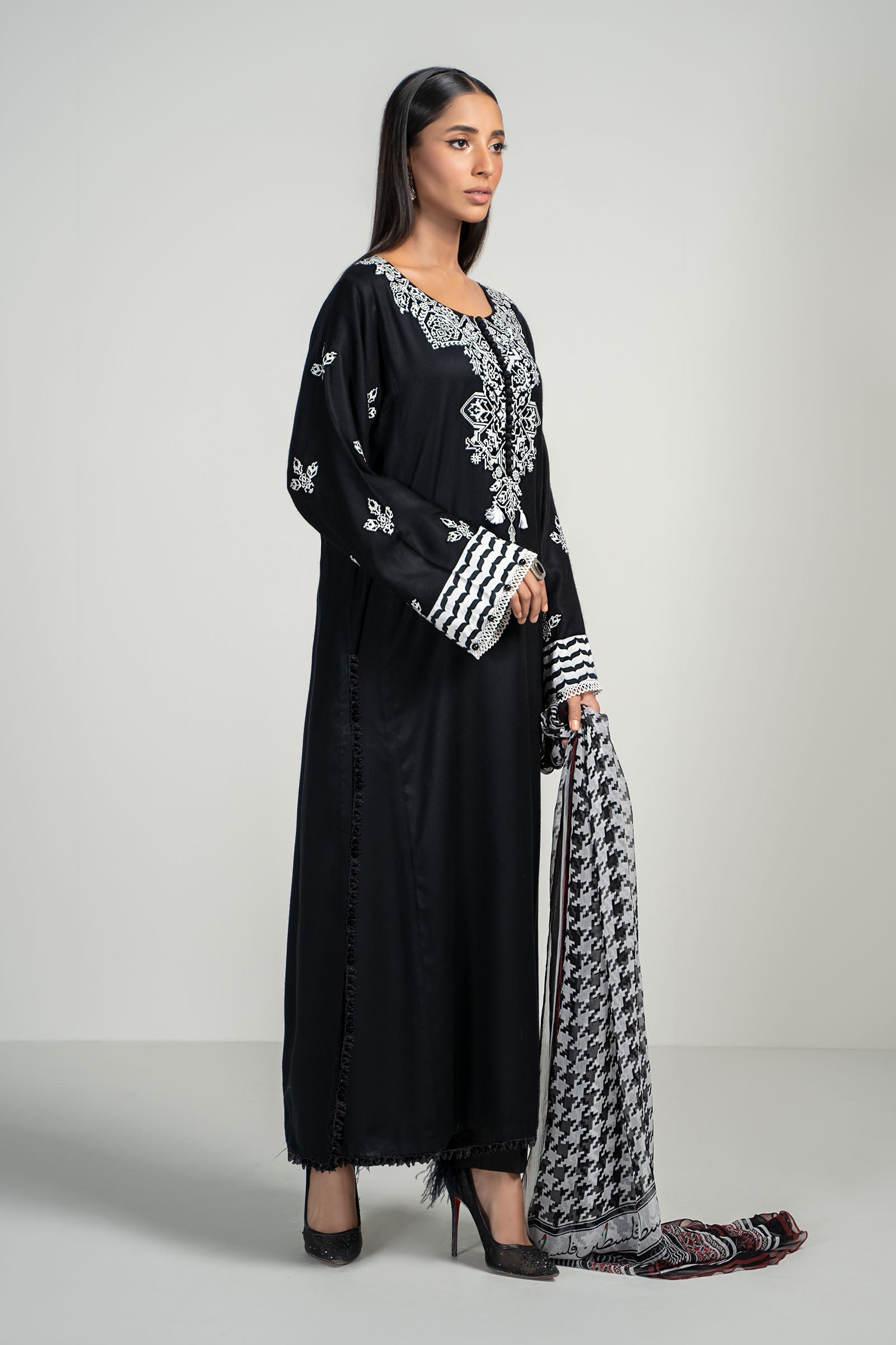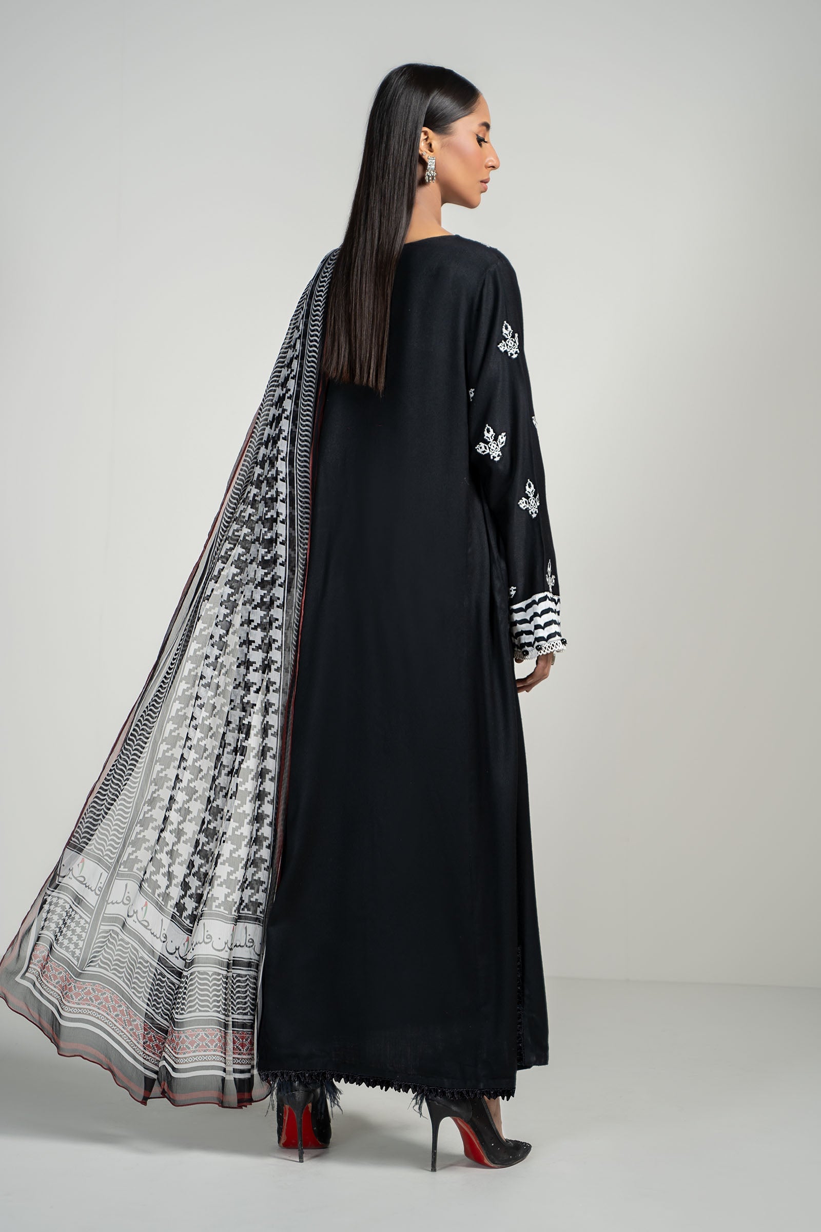 Dyed Long Sleeves With Embroidery, Lace, Pearl & Organza Detailing