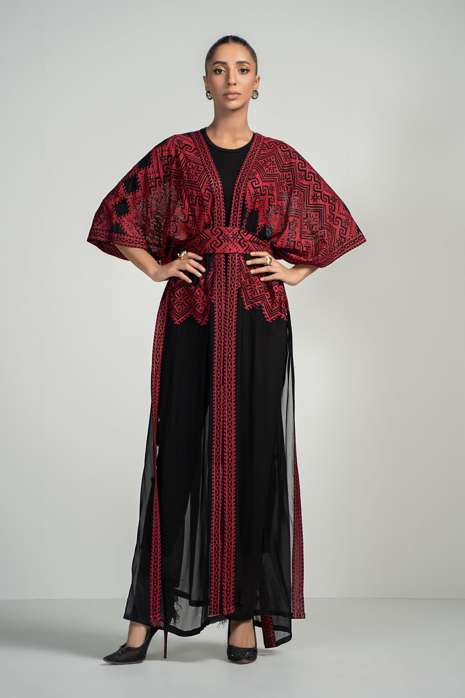 Dyed Embroidered Kaftan With Embroidered Belt