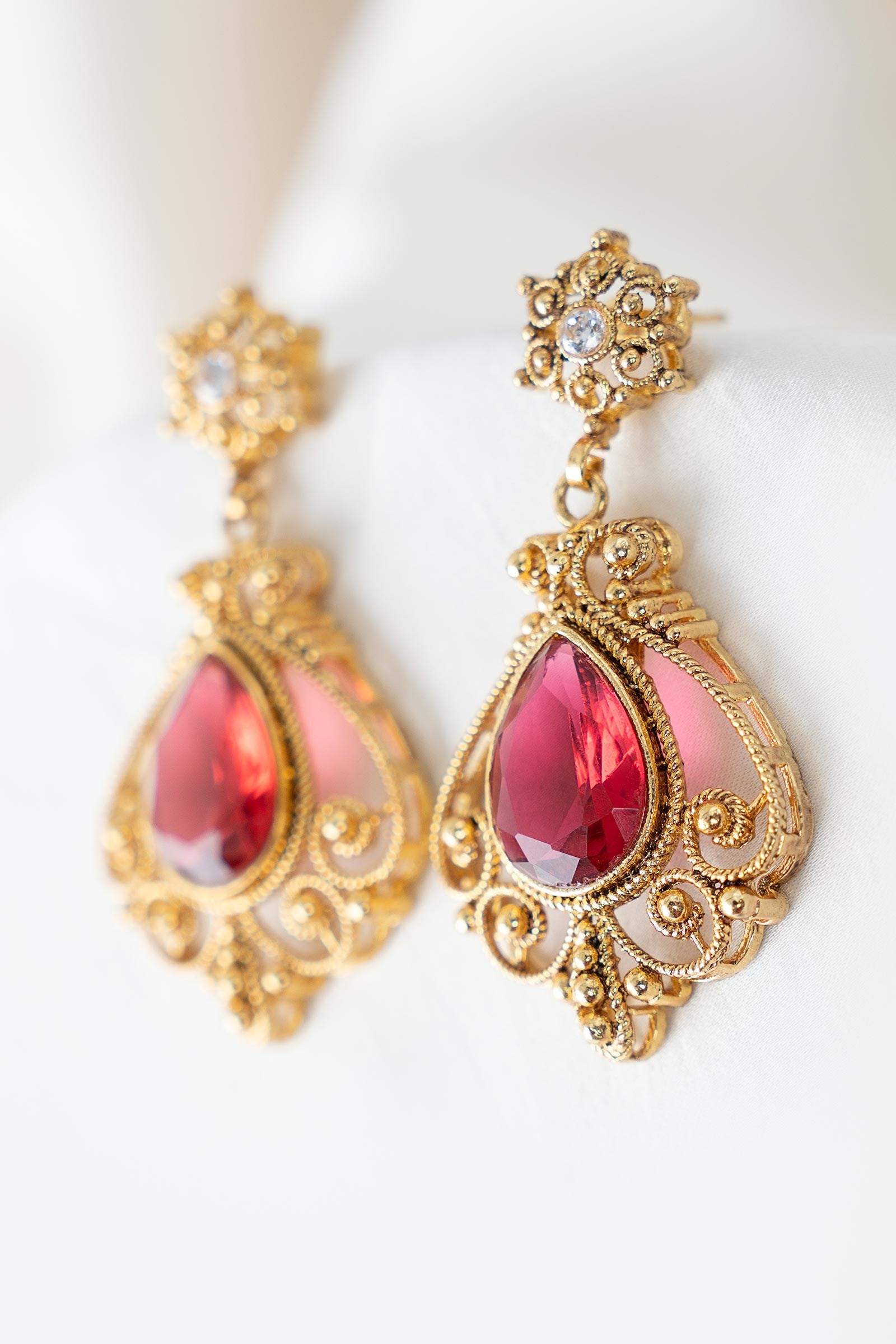 Intricately embellished and unmatchable dainty artistry! This statement pair is bejeweled with shimmering white zircons and glossy pink glass stone artistry, perfect for stealing the spotlight.
