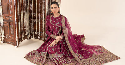 Highlighting classical and feminine intricacies with our three-piece embroidered raw silk suit, featuring an embroidered angrakha embellished with tassels, adorned with dyed dhaka trousers, and an embroidered dupatta with borders weaving classical tales with meticulous embroidery makes it a statement choice for ever-lasting soirees.