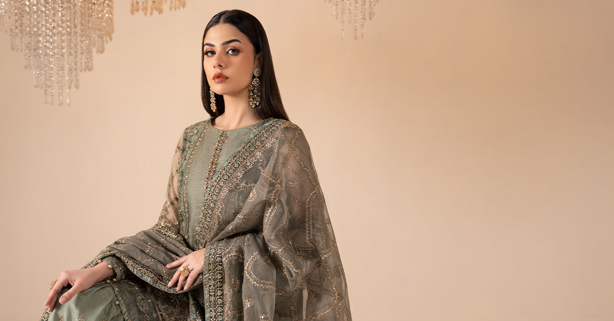 Work Details: Sequins, Thread & Tilla Embroidery With Crystals, Beads & Gotta Balls Detailing