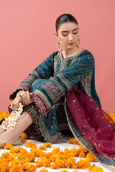 3 Piece Embroidered Raw Silk Suit