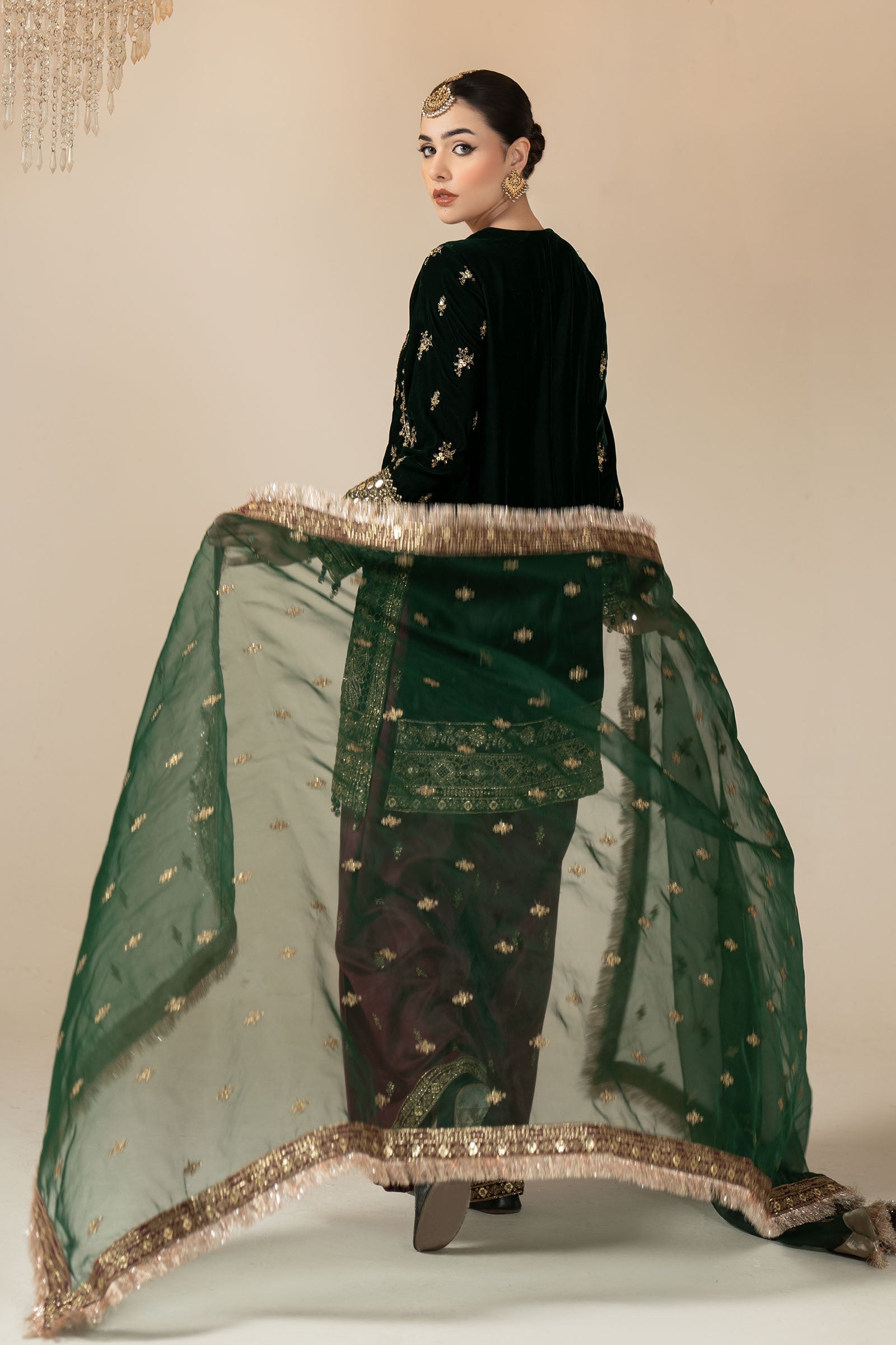 Four-Side Embroidered Border With Gotta Lace Detailing