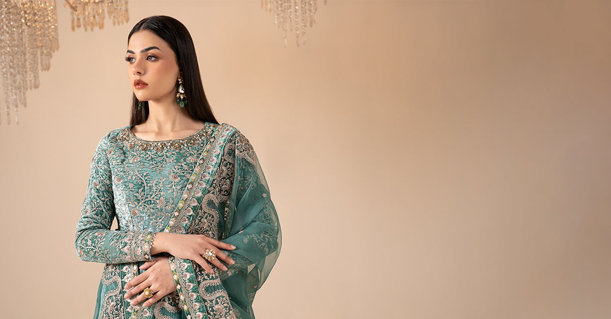 Embroidered Border With Gotta & Pearl Drop Detailing