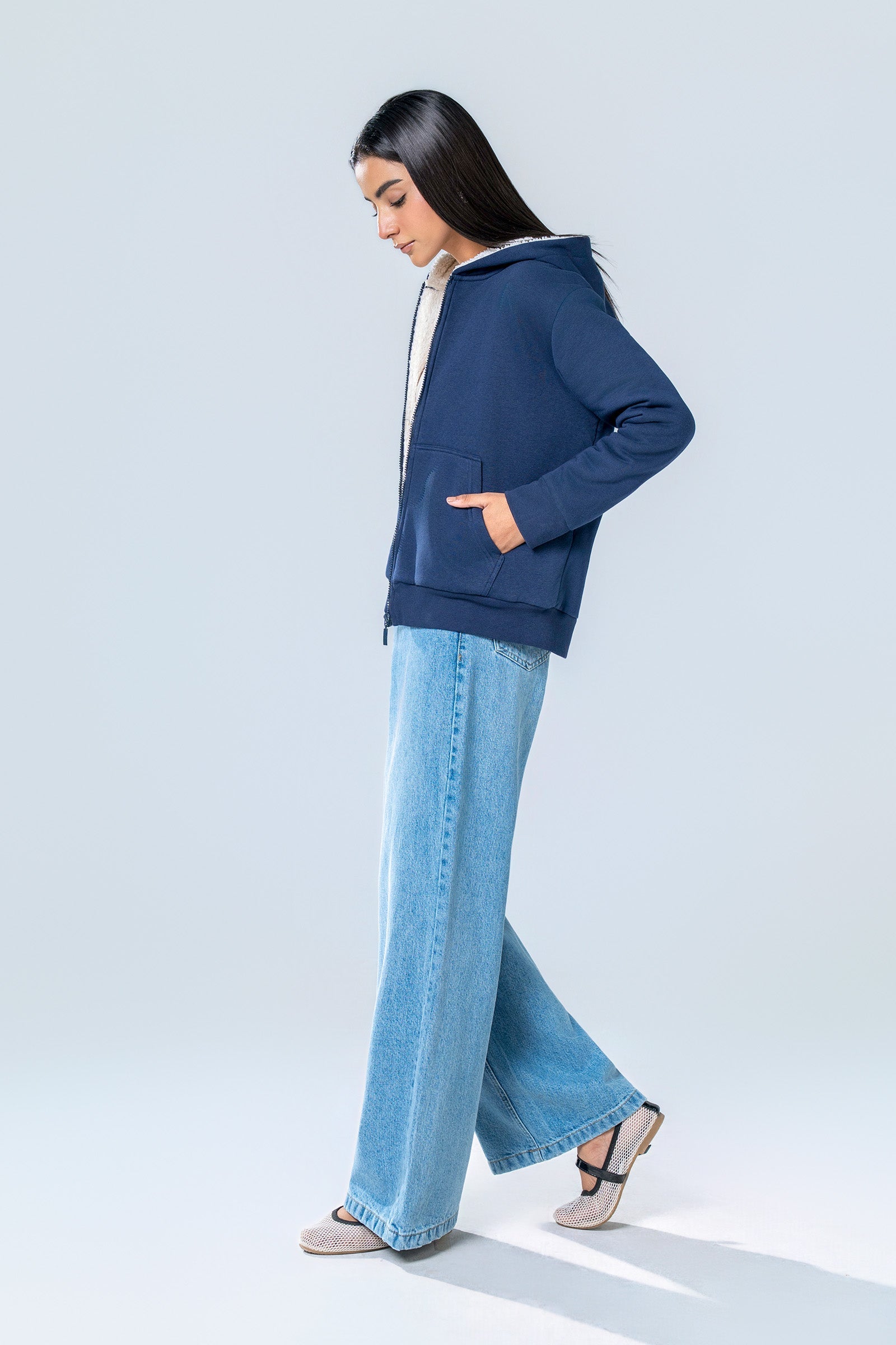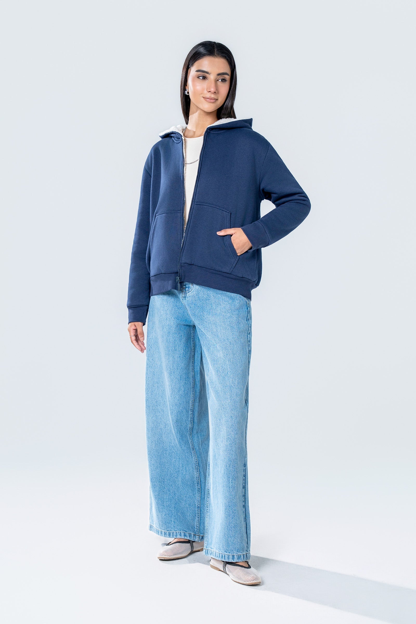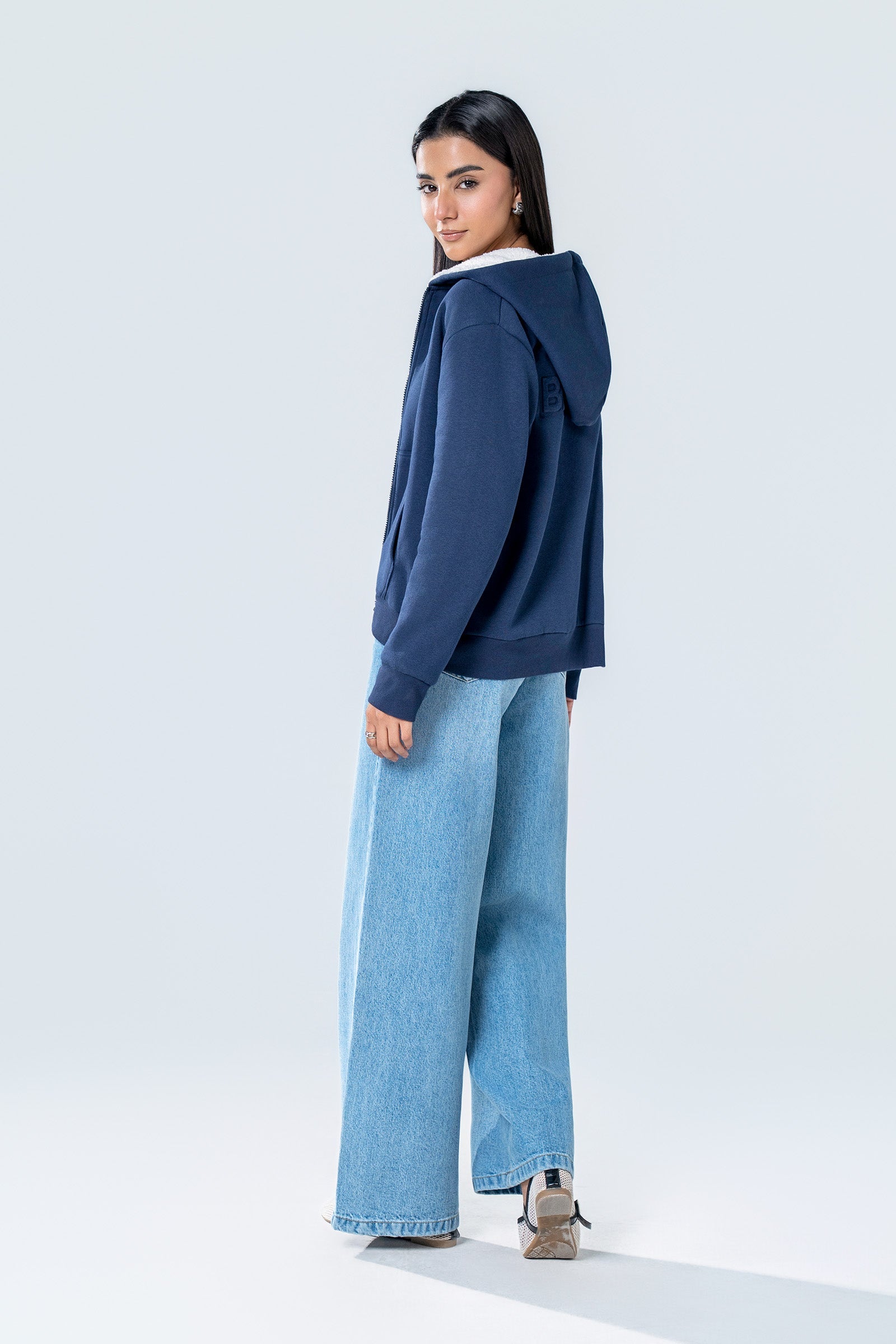 Fleece Hoodie With Zipper Opening, Long Sleeves, Sherpa Lining & Embossed Back LogoHoodie Material: FleeceLining Material: SherpaColor: Navy BlueStretch: HighFit Type: RelaxedAvailable in XS, S, M & L SizeNoteDry Clean OnlyDo Not BleachDo Not Iron