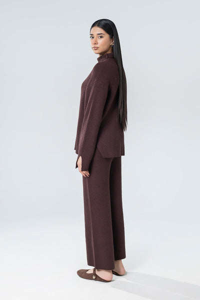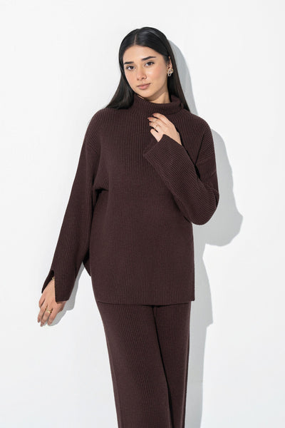 Turtleneck Sweater With Long-Sleeves & Side Slits Paired With Elasticated Wide-Leg Bottoms.