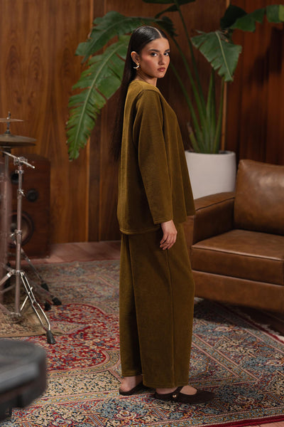 Co-ord Set With Round Neck Long-Sleeve Top Paired With Wide-Leg Pants.